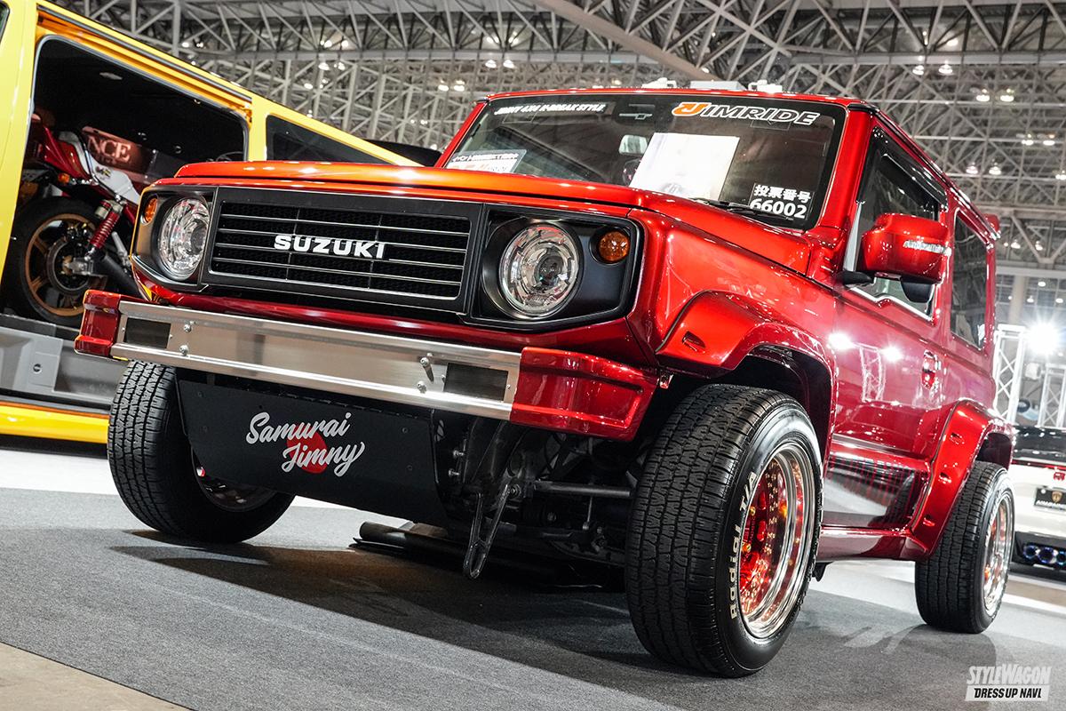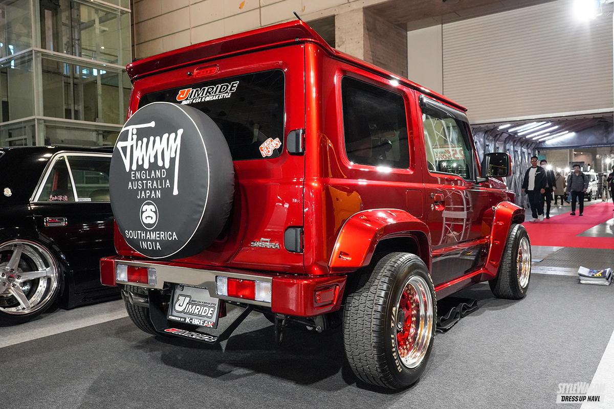 アラフォー&アラフィフ世代の目にはそんな一時代のトレンドの再来として見事ツボるのが「Kブレイク」のジムニーブランド「JIM RIDE」(ジムライド)のパッケージモデルに新たに加わった「サムライジムニー」のJB74ジムニーシエラのデモカーである。