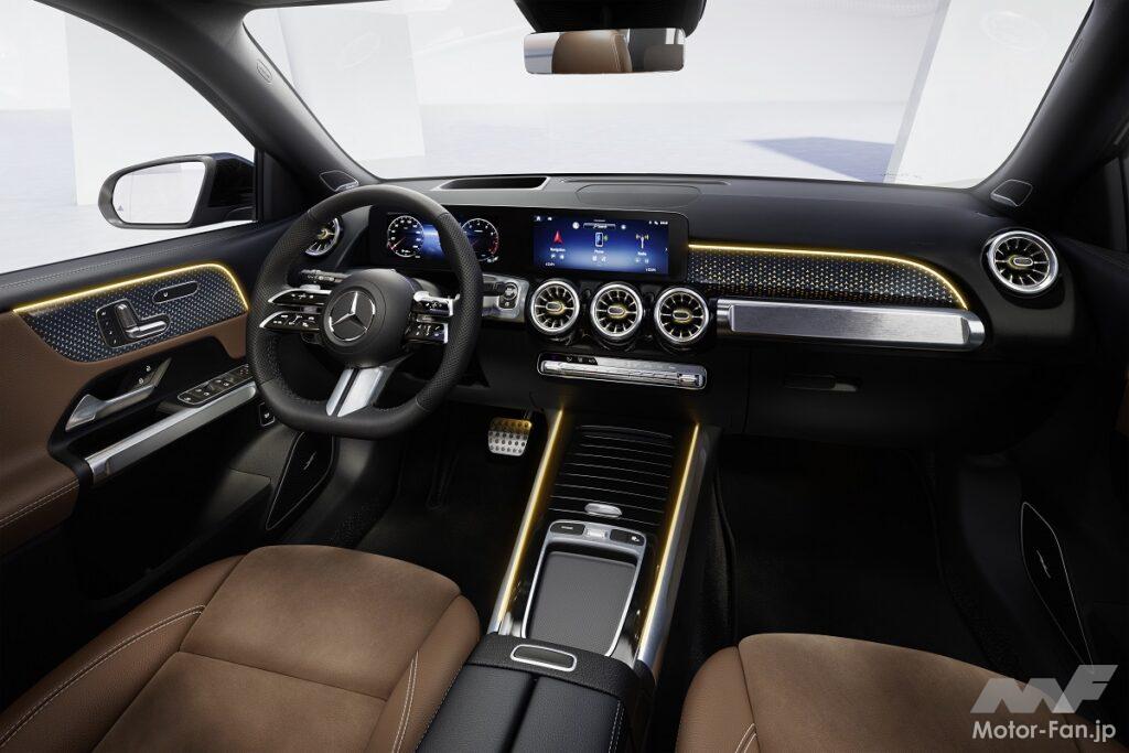 さらに、フルLEDヘッドライトとリアライトの採用により、外観の印象が向上し、4種類のホイールデザインと新色スペクトラルブルーメタリックの追加により、オプションの幅が広がっている。新型GLBには、ハイグロスブラックの17インチ5ツインスポークアルミホイールとハイグロスターンドサーフェスが基本装備されており、オプションで18インチから20インチのホイールを設定することも可能。