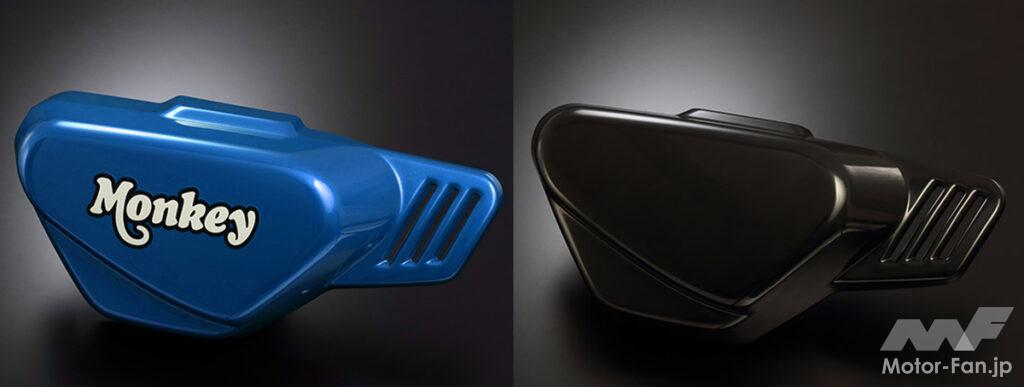 ノーマルのアップタイプマフラーからダウンタイプマフラーへ交換した際に装着可能となるサイドカバー。スタイリッシュなデザインながらもモンキーの純正らしさを残しているのが特徴。