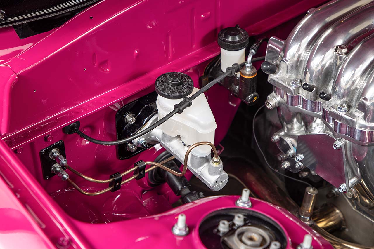 ガレージ・インフィニティーはAE86のチューニングにも長けたショップ。AE111の純正マスターシリンダーを流用したマスターバッグレスの手法を、そのままFC3Sに活用した。配管もキレイに引き直し、内装を元に戻すと全く見えなくなる室内側も手を抜かずに作業している。