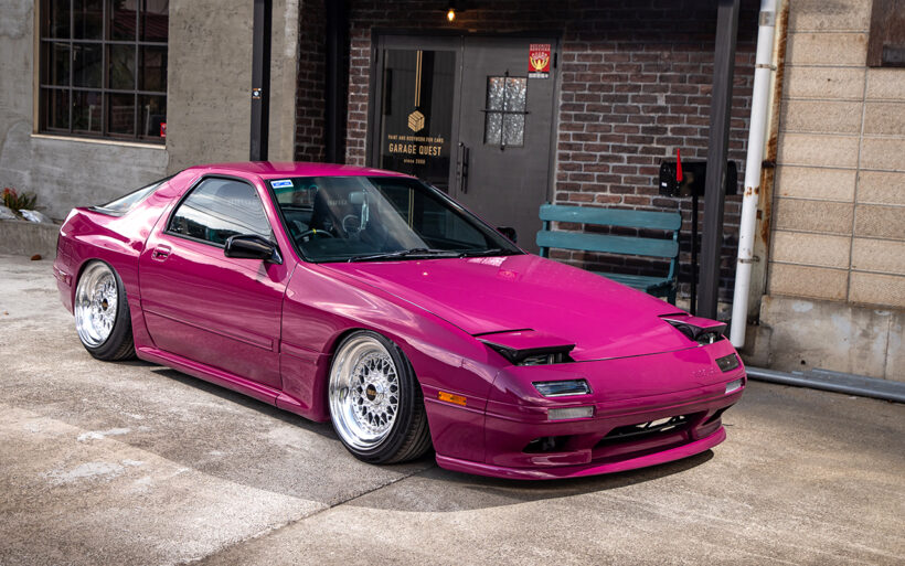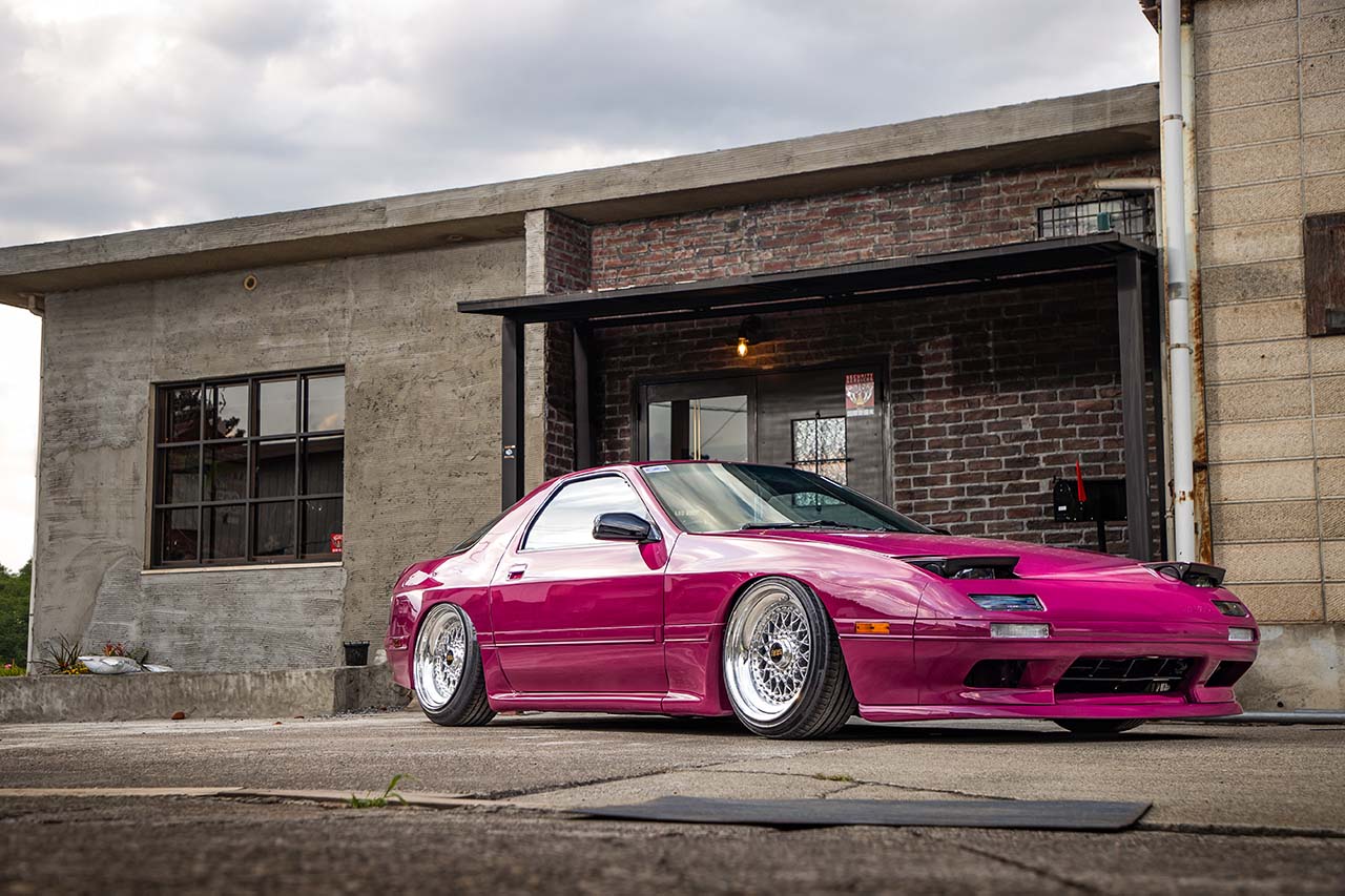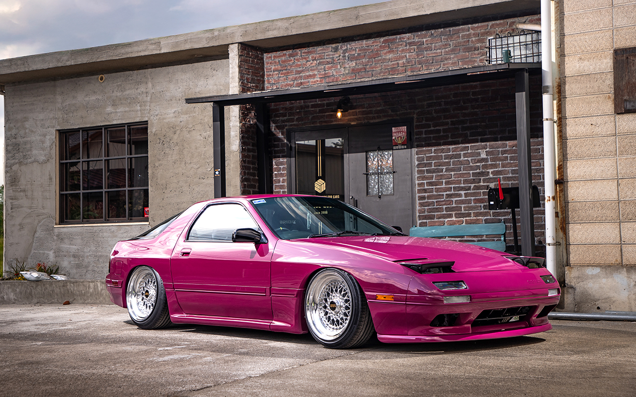 ホイールは東野さんが「どうしてもFCに履かせたかった!」と拘ったBBSのRS。サイズは17インチで深めのダブルステップリムと合わせてバレル研磨。ついつい見入ってしまう足元の美しさを実現した。車高調はTEIN製をチョイス。