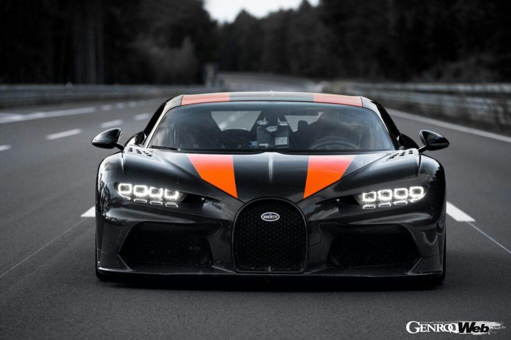 ブガッティ シロン スーパースポーツは、同300+に搭載された技術や空力設計を基に、市販の超高速グランドツアラー仕様として2021年に登場した。専用チューニングが施された8.0L W16クアッドターボエンジンは300+と同様に最高出力1600PSを発揮。1600Nmの最大トルクは2250rpmから7000rpmという広い回転域で持続する。0-200km/hは約5.8秒、最高速は電子制御で420km/hに制限されているが、理論上は440km/hに達するポテンシャルを備えている。
