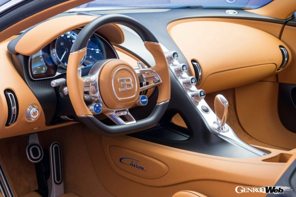 最高速400km/hを超えるブガッティ シロンには、低くワイドなプロポーションが与えられている。全幅は2mを超える堂々としたサイズが印象的だ。キャビン内は十分なスペースが確保されている。