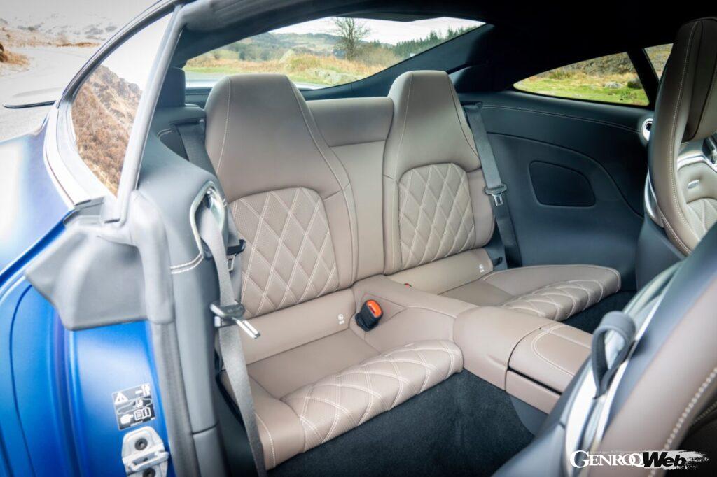 2ドアクーペのインテリアはオプションながら2+2レイアウトを選択可能で実用性も確保されている。前席はドライバー中心に設計され、低く構えたシートポジションと高いセンターコンソールにより、スポーツドライビング時の集中を妨げない配慮がされている。後席は補助的なポジションで、日常的には荷物置きとしての活用が想定されるが小柄な乗員や短時間の利用は可能だろう。321Lのトランク容量は(+2シート選択時)後席を倒せば675Lに拡大でき、スーパースポーツクーペとしては使い勝手が良いといえる。なお4ドアクーペのリヤシートは十分なスペースが確保されており5名乗車が可能となっている。