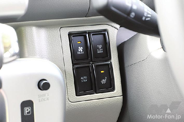 さらに4WDモデルは、状況に応じて「2WD」「4WD AUTO」「4WD LOCK」の3つのモードから選択できる電子制御式4WDモデル+ぬかるみ脱出アシストも採用され、利便性が高まっている。昨今のアウトドア需要で、エブリイワゴンのコンパクトな車体を活かし、釣り場などの泥濘地へ入っていく方も多いことから、この機能はうれしいものとなるハズだ。