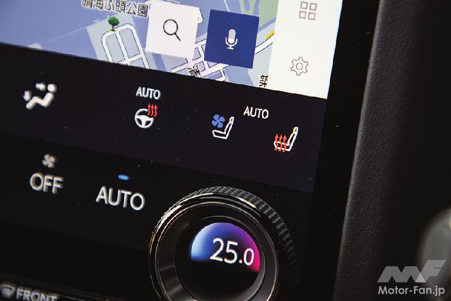 353PS/650Nmのスペックは2480㎏の重量級ボディを軽々走らせる余裕のパフォーマンスだが、LXよりもターボラグが少ないシームレスなトルク特性と高回転までストレスなく吹け上がる伸びの良さはスポーティと感じるほど。ただエンジンサウンドはやや主張が大きめなので、もう少し抑えたいところだ。シャシー系は基本素性に優れるGA-Fプラットフォーム+強化された車体の組み合わせに加えて、専用セットアップのAVS(電子制御ダンパー)、EPS(電動パワーステアリング)、E-KDSS(前後スタビライザーを電子制御)と、トヨタ/レクサスの本格オフローダーに与えられた武器をすべて盛り込む。基本的にはグローバル1スペックだが、タイヤだけ騒音規制対応のために265/70R18(オールテレイン)から265/65R18(オールシーズン)に変更されている。