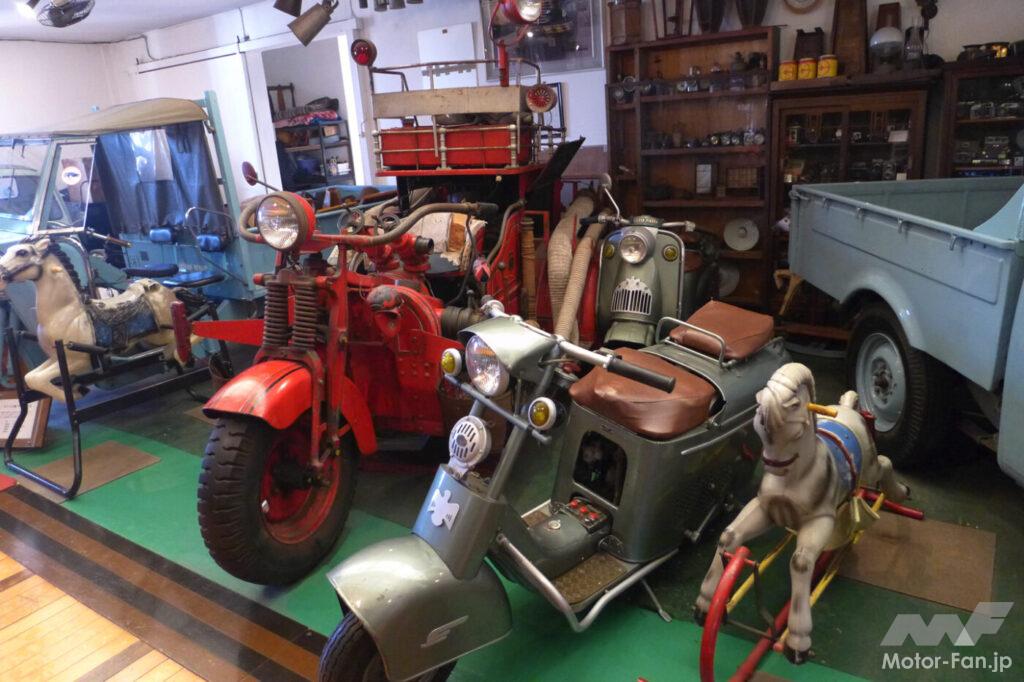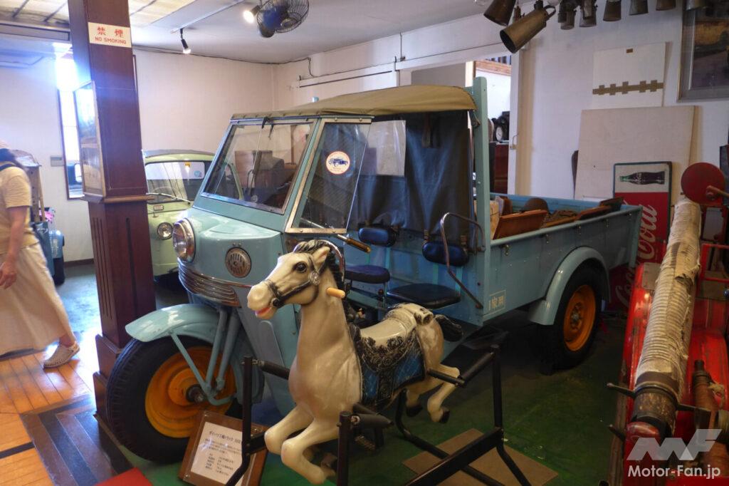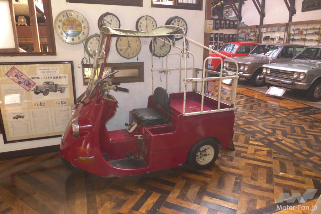 そのなかでも充実していたのが商店の配送や小口配送を担っていたオート三輪で、ダイハツ・ミゼットやマツダK360、三菱ペット・レオのほか、終戦直後の焼け野原となった広島で活躍した「バタンコタクシー」ことマツダ号PB型三輪乗用車のタクシー仕様のような珍しい車両もあった。