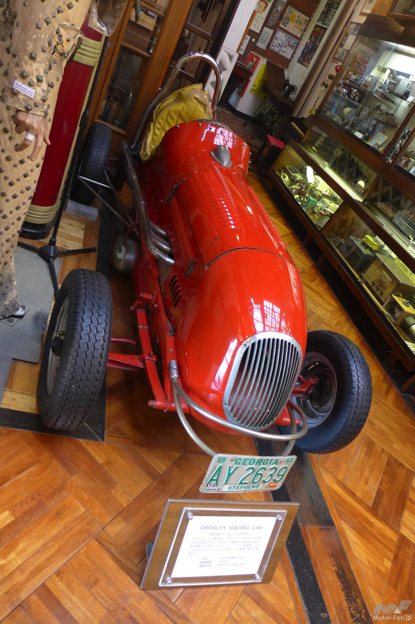 展示車両の説明書きには「クロスレー・レーシングカー」とだけしか書かれていないが、アメリカで1933年にはじまり、現在でも高い人気を誇るミジェットカーで間違いないと思う。このレースはダートもしくは舗装路のオーバルコースを舞台に、市販車の4気筒エンジンを使用した小さなレーシングカーで戦われる競技だ。
