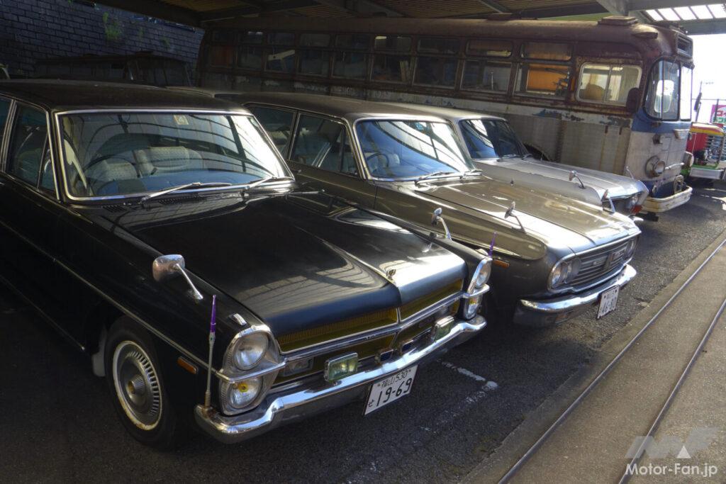 また、屋外の展示スペースには消防車やトラック、バスなどの大型車両のほか、スペースの都合から館内には展示できなかった「縦グロ」こと3代目日産グロリア、2代目トヨタ・クラウン、初代三菱デボネアなどが並んでいる。