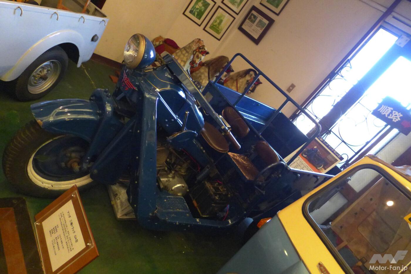 展示車両は1987年に広島タクシー、元マツダ社員などの協力により、1952年式LB型3輪トラックをベースに半年かけて復刻したものだ。