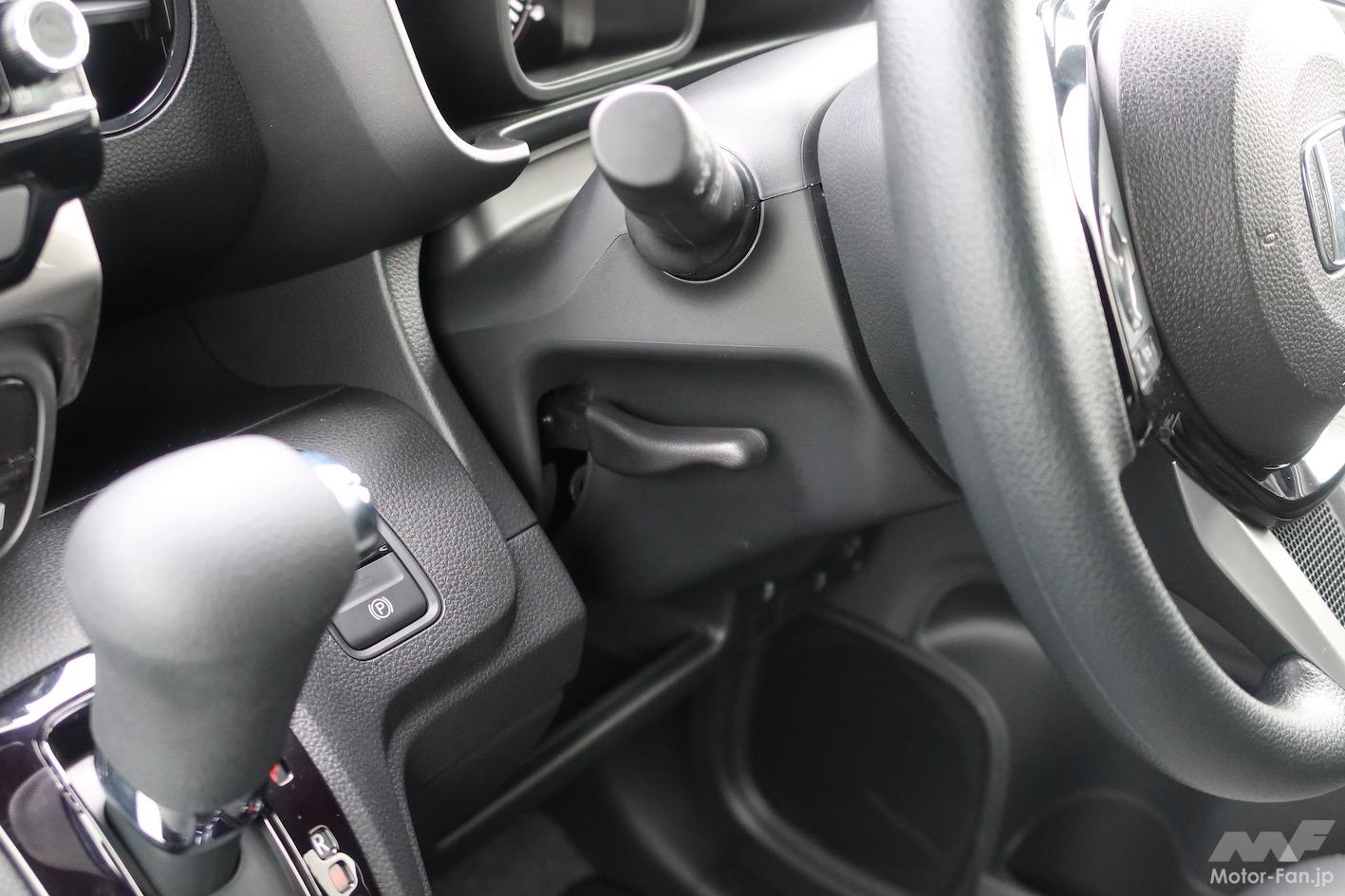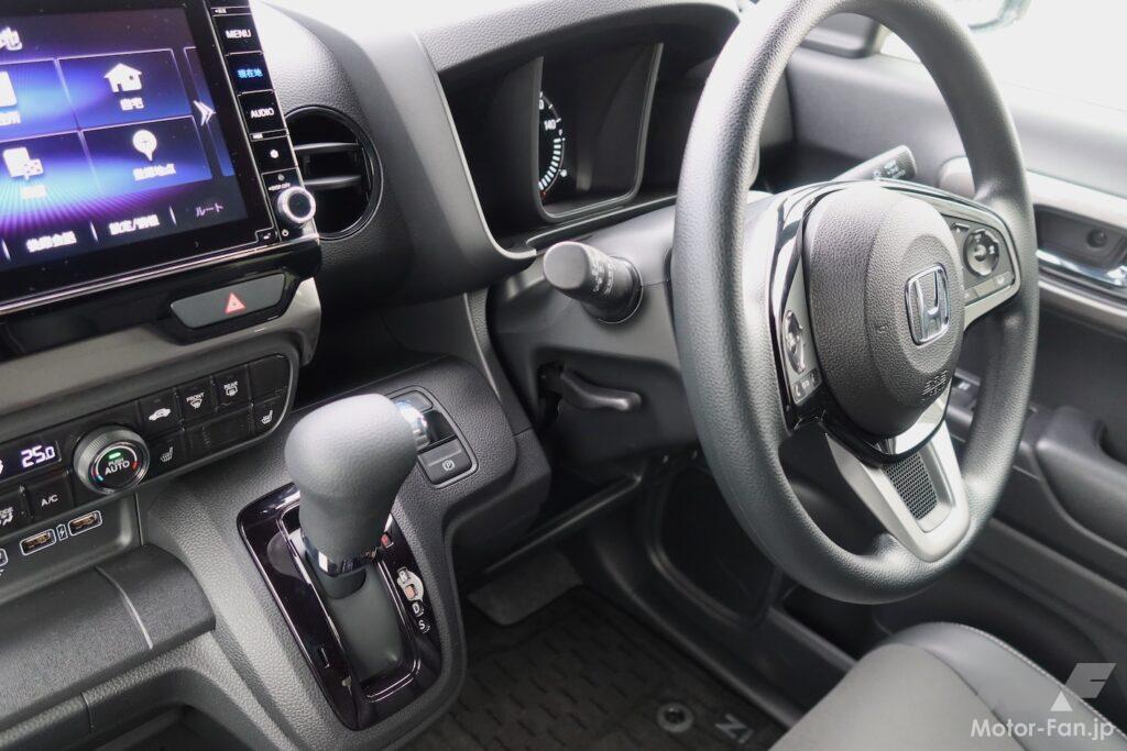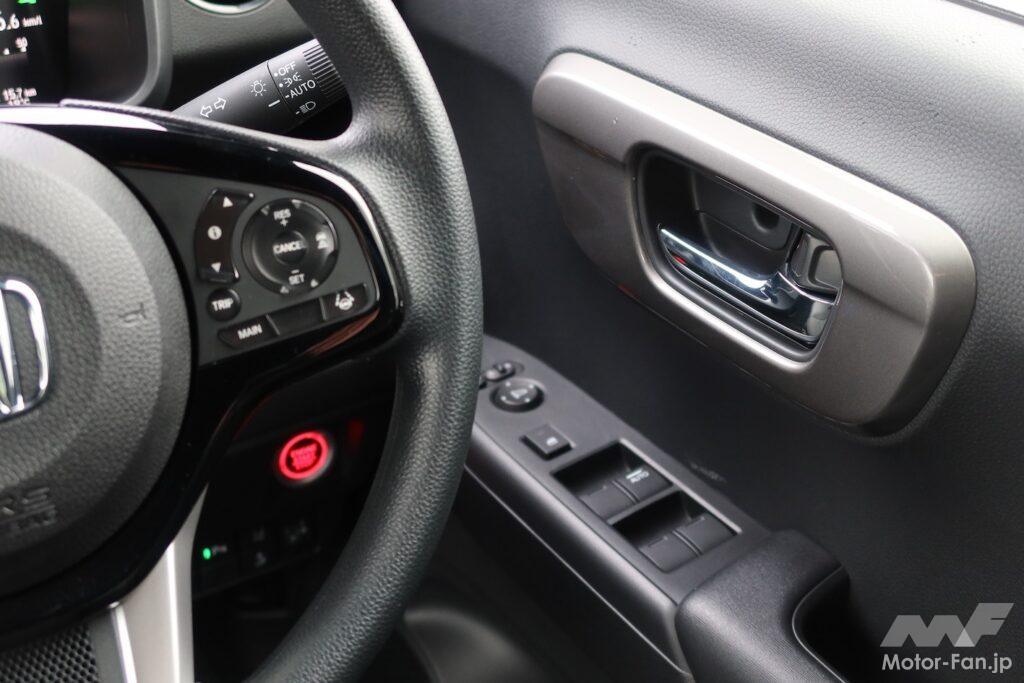 運転姿勢がしっかりとれるのは、(マイナーチェンジ前から受け継ぐ)N-WGNの美点だ。ステアリングホイールを上下に動かすチルト機構を備えた軽自動車は多いが、N-WGNはチルト機構に加え、ステアリングを前後に30mmの範囲で調整できるテレスコピック機構を備える(ホンダの軽自動車初だ)。