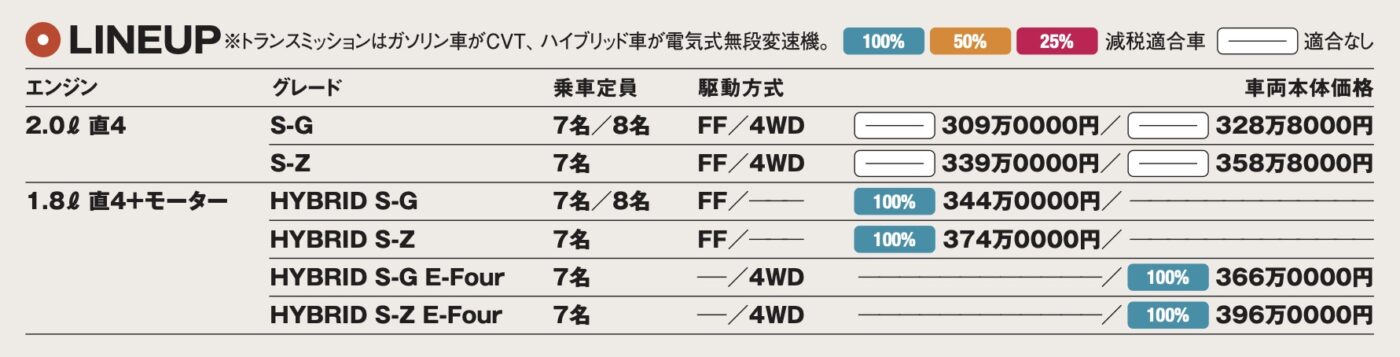 全幅は3ナンバー専用となっても全長はこれまで同様に5ナンバー枠におさまる4695㎜。GA-Cはドラポジが大幅改善されたこともあって、2列目以降の空間は先代と同じか少し狭いくらい。一方で7人乗り、8人乗りともに2列目の超ロングスライド機構を実現。特にキャプテンシートは先代のような〝途中切り替え〞なしにスライドできるようになって、現実的な使い勝手や融通性は大きく進化している。左右跳ね上げ式を踏襲するサードシートは定評のアシストスプリングに加えて、収納時のベルト固定も省略。これにより、収納して固定するところまでワンタッチの片手操作でやり切れるようになった。これも現実的な効能が大きい進化だ。