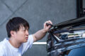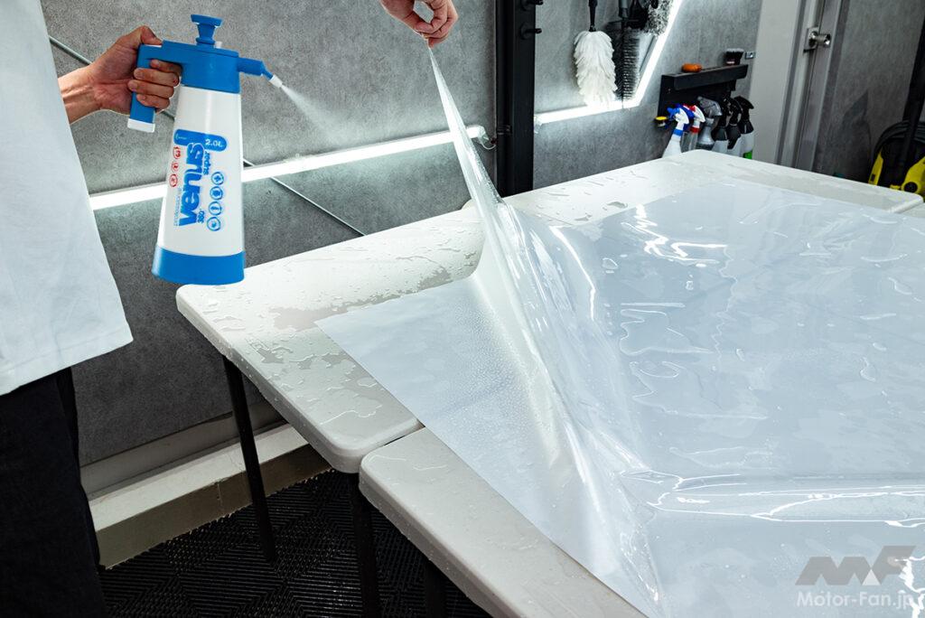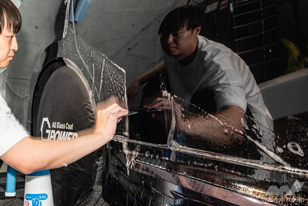 リテック・プロテクションフィルムの施工は、ほこりなどが噛まないようにクリーンな空間で行うのが基本。須賀さんがじっくり丁寧に作業を行ってくれる。尚、リテックでは施工店を募集していて技術講習なども実施。現在各地にサービスディーラーを拡大中なのだ。