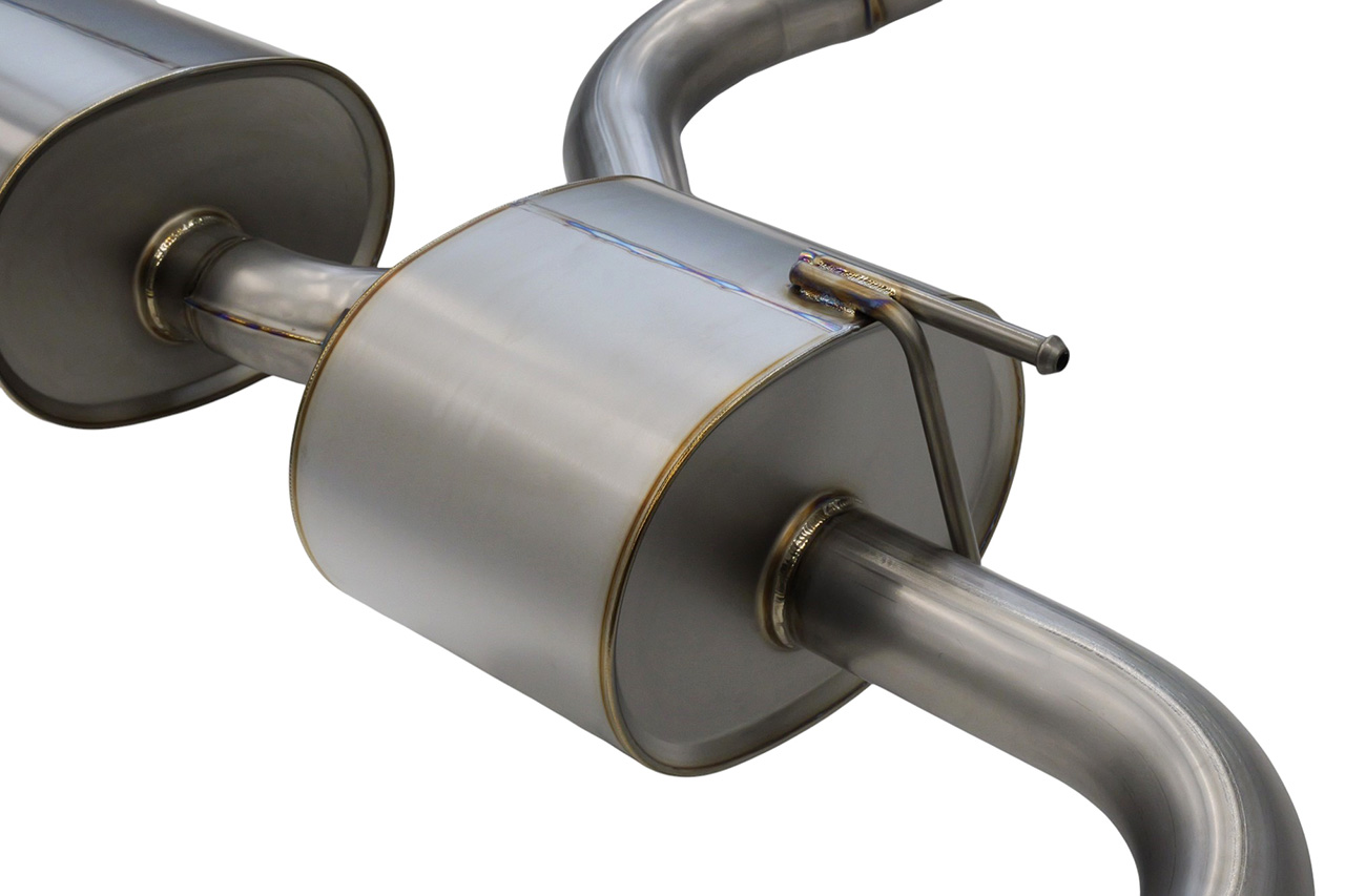 パイプ径はφ74.7 → φ60.5×2の構成。絞りのないサイレンサー構造を採用することで低排圧化を実現しつつ、近接排気音は90dBに抑え、もちろん車検対応。