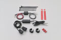 メインキー連動タイプなので、バッテリー上がりの心配なし。取り付けはブレーキスイッチに付属ハーネスを接続し、フレームのボルトに共締めするだけの簡単仕様。ハンドル径Φ22.2 / Φ25.4に対応。本体幅12.5mmのスマート設計で、コントロールスイッチに馴染むデザインに仕上げられている。