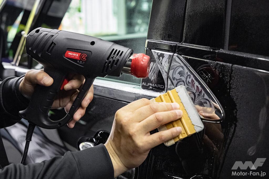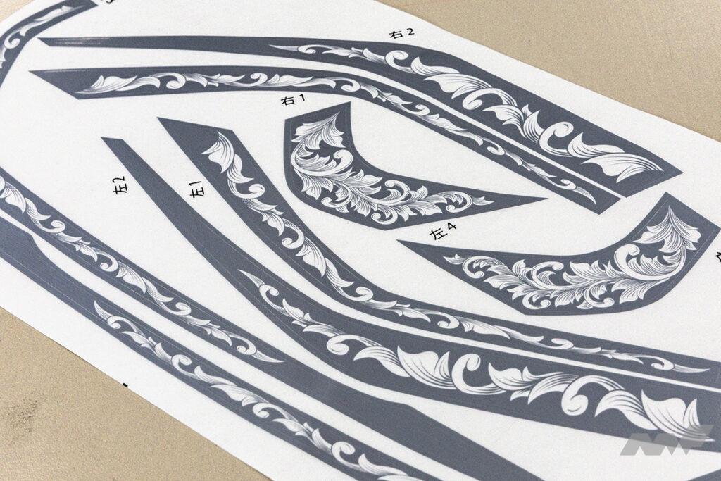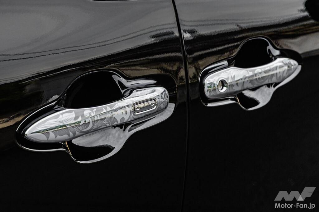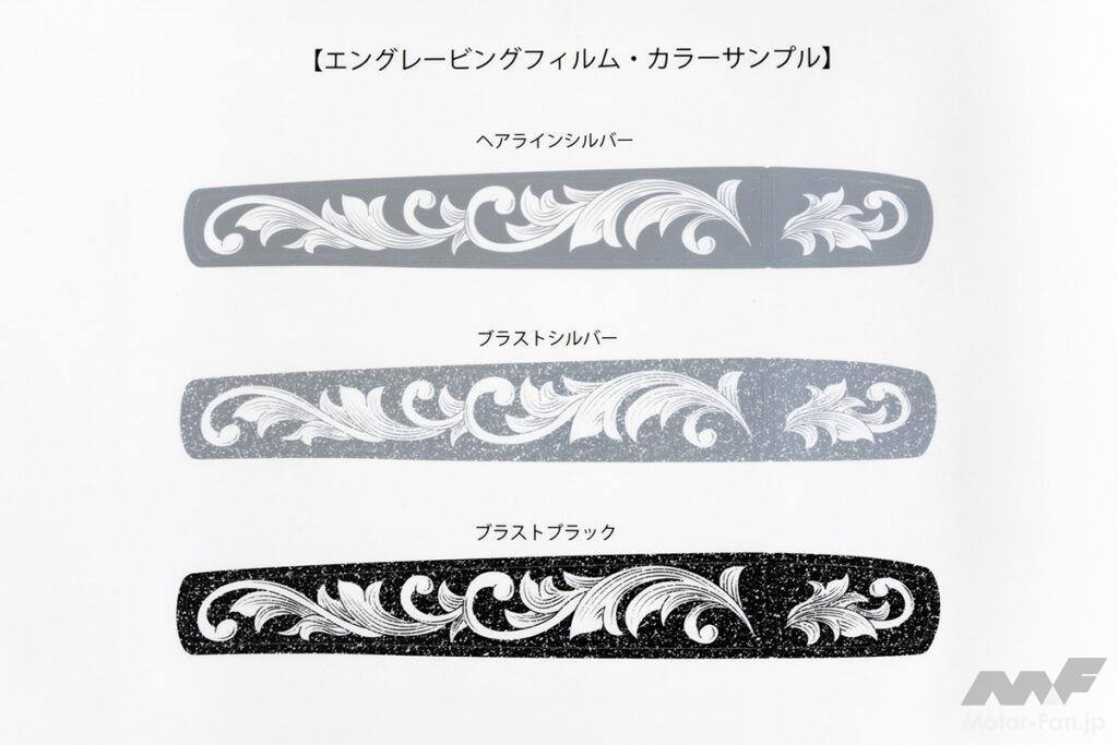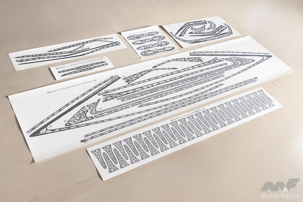 一見するとノーマル風だけど、近くに寄ってメッキ部分を眺めてみるとアンティークの宝飾品を連想させる緻密なデザインパターンがびっしり! そんなさりげなさとオドロキの二面性が演出できるDIYドレスアップアイテムとして人気となっているのが、TSKグラフィックスのプレカットデカール「エングレービング」。アルファード/ヴェルファイア用についてはこれまで30系のみの設定となっていたが、今回待望の40系用が新登場! 持ち前の質感の高さをそのままに、車体サイドのピラーまわりやドアハンドルの他、装着率が高いモデリスタ製エアロパーツのメッキ部分まで幅広くカバー。30系と比較すると、40系はノーマル状態でのメッキの使用範囲自体が少なくなっているため、デカール施工後のインパクトは若干控えめな印象だが、逆に「分かる人だけに分かる」というちょっとオトナ路線を意識した個性の表現にはピッタリ!