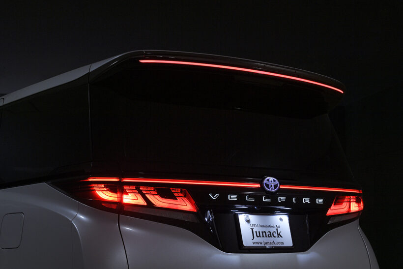 ヒカリモノ まるで純正装備!? ジュナックのアルヴェル用ライティングパーツが大人気の理由とは?【写真・4枚目】 LEDトランス ワード イルミネーション ■価格/10万7800円〜11万8800円 ■カラー/アッシュブルー、ターコイズブルー、ブルー LEDトランスフォーム モデリスタ・シグネチャーイルミブレード■対応/ヴェルファイア(モデリスタ装着車) ※モデリスタパーツのみの販売あり(9万3500円) ■価格/8万2500円(現品加工) LEDトランスフォーム for イルミルーフスポイラー■対応/モデリスタ装着車 ■価格/4万4000円(モール単品)/11万円(現品加工) LEDトランスコースター ■対応/モデリスタ マルチカラーインテリアイルミネーション装着車 ■価格/3万3000円 この画像の記事を読む