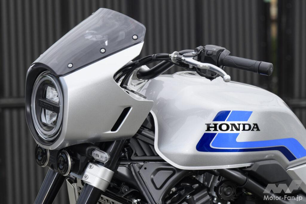 SEコンセプトでは、特にフロント周りの印象が大きく変化。丸型ヘッドライトを包むビキニカウルはクラシックバイクを想起させ、視覚的インパクトが強い。CBシリーズの伝統を色濃く残しつつ、現代的な精悍さを演出しているのが特徴。