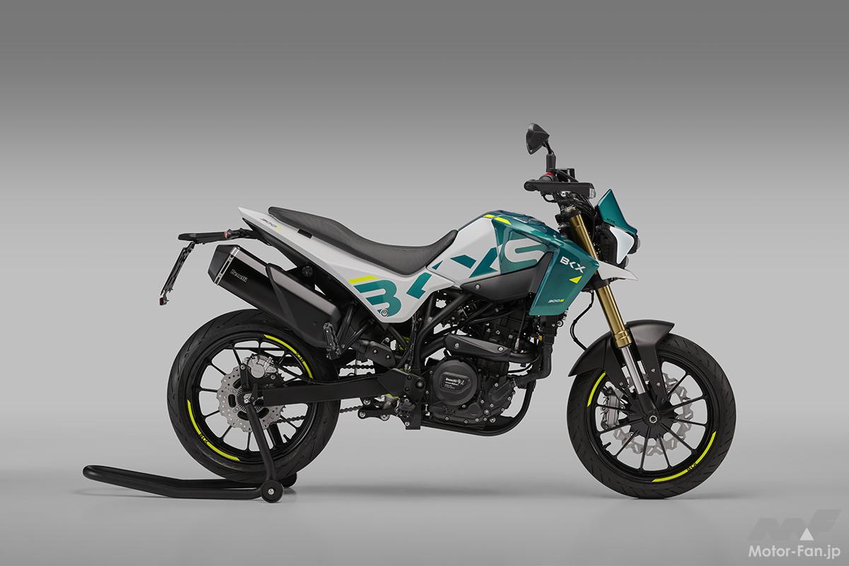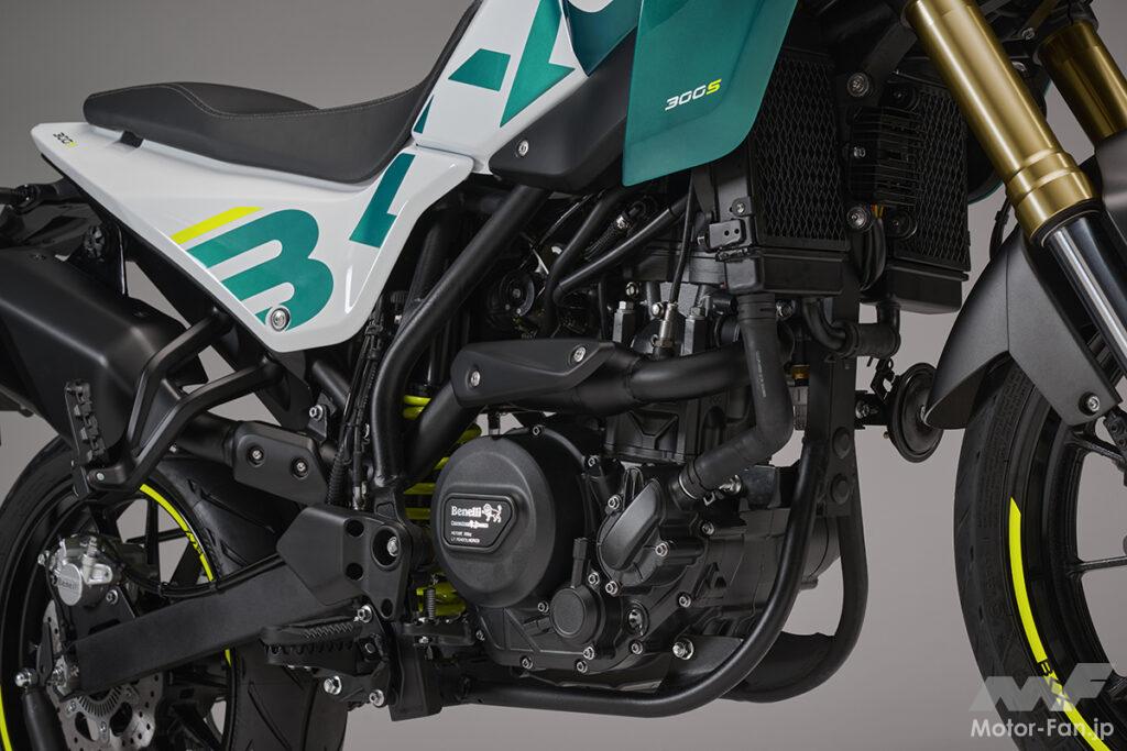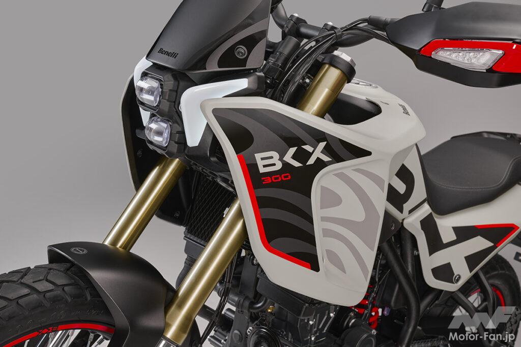 イタリア生まれの名門バイクブランド「Benelli(べネリ)」から、遊び心と冒険心を煽る2台のミドルスポーツモデルが新登場。アドベンチャースタイルの「BKX300」と、ターミネータースタイルの「BKX300S」は、フレーム・エンジン・サスペンション・ディスクブレーキの基本構造は共通としつつ、外装類や前後ホイール等を変更し、異なるスタイリングや走行フィールを与えている。
