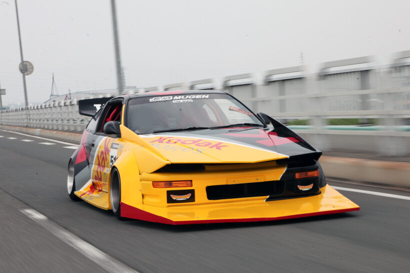 まずは、目にしたら誰もが振り返る外装だ。当時モノのHiroフルエアロキットを基本にダルマセリカ用ワークスオーバーフェンダーを追加。それに合わせてサイドステップをワンオフ製作し、リヤにそびえるスポイラーはS130Z用ホエールテールを加工装着する。