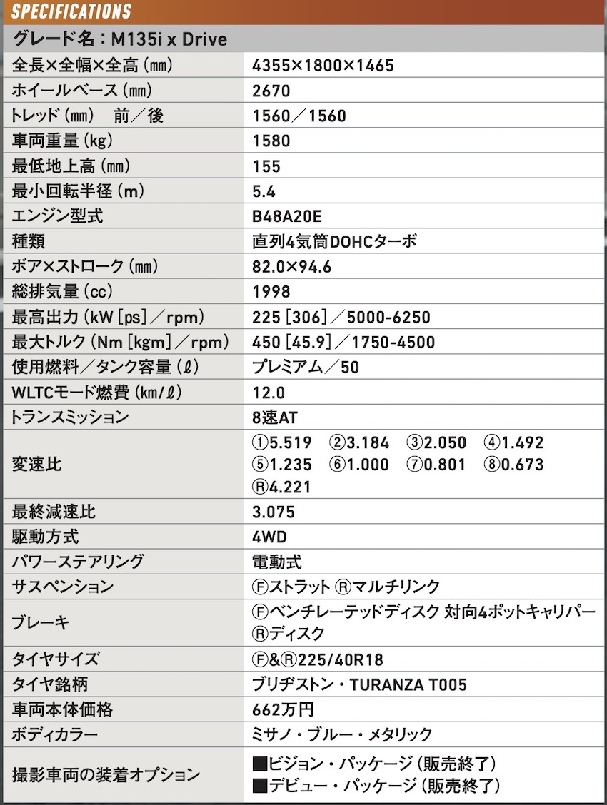 ここに紹介のM135iも、まさにそうした手法で構築された存在。このブランドが長年にわたって使い慣れ、一時期は周辺のブランドが次々と手を引いて行く中それを使い続けることをひとつの売り物としてきたFRレイアウトから、ついにFFレイアウト・ベースのアーキテクチャへと転換を図って話題をさらったのが、最新の1シリーズ中で最もスポーティなキャラクターをもつこの1台である。