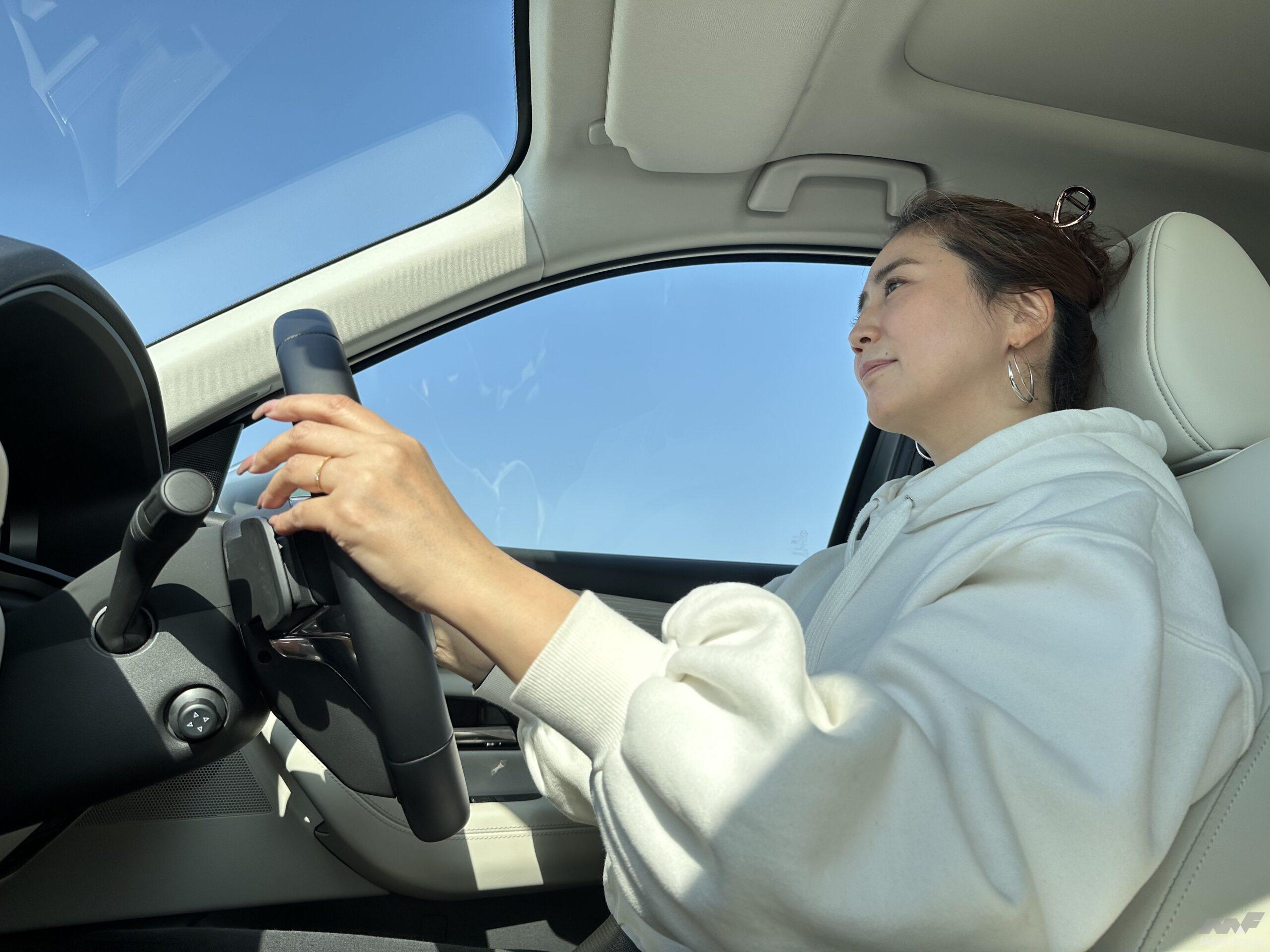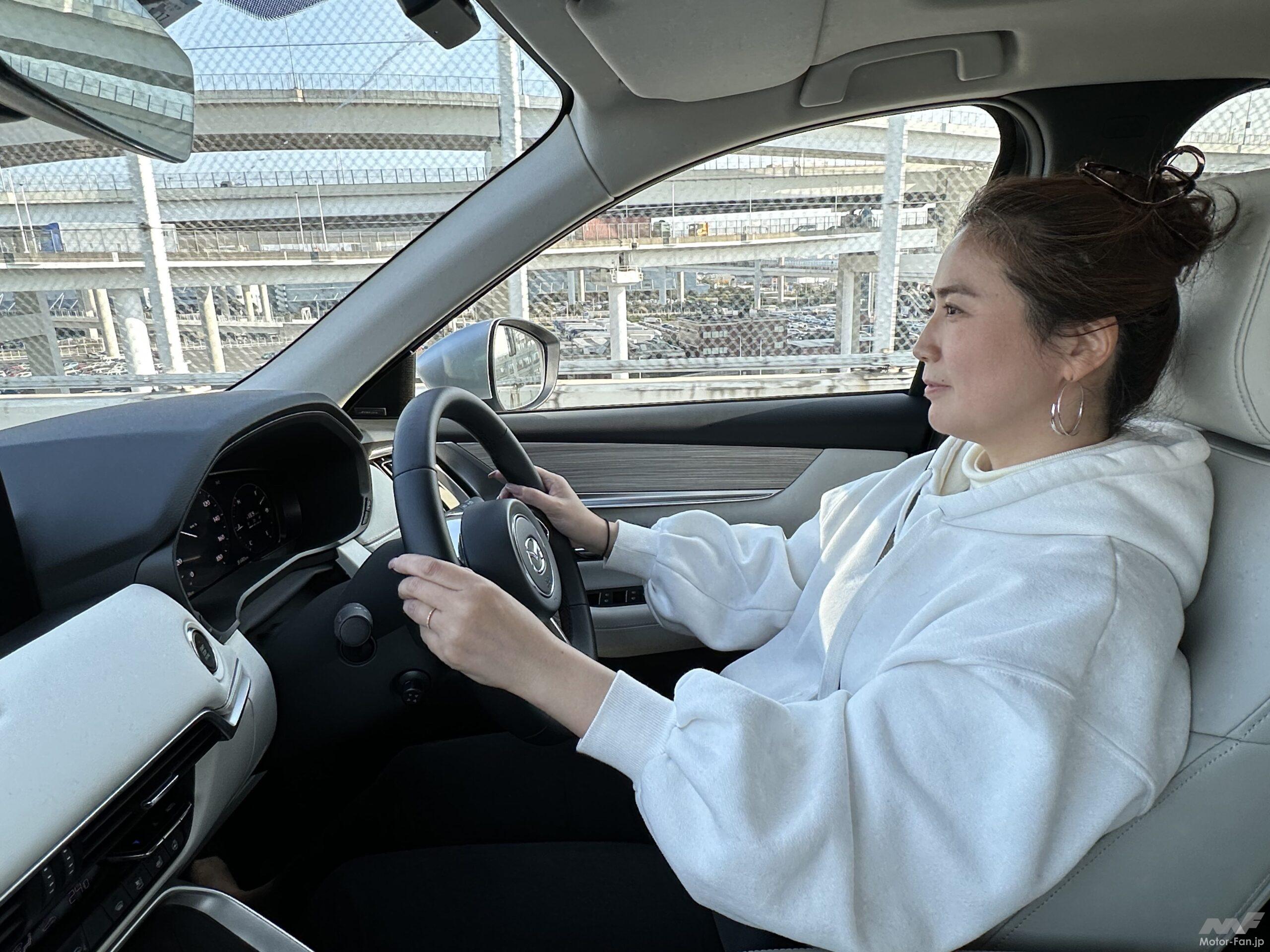 助手75:う~ん、やっぱりアタクシのサイズで乗るには、やっぱり大きいなぁ。ん……ちょっと待って。アレ? アタクシのマツダ試乗初、シートポジションが合わせられていないかも……。なんだろう。乗った瞬間にポジションをチャッと決められる、っていうのがマツダに対するイメージなんだけど、今回ばかりは少しアレレって感じだな。でも、視界はすっばらしくいいわね。この乗った瞬間の運転しやすそうな安心感も、さすがマツダって感じ。