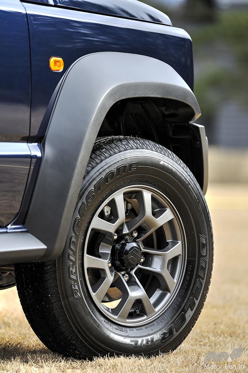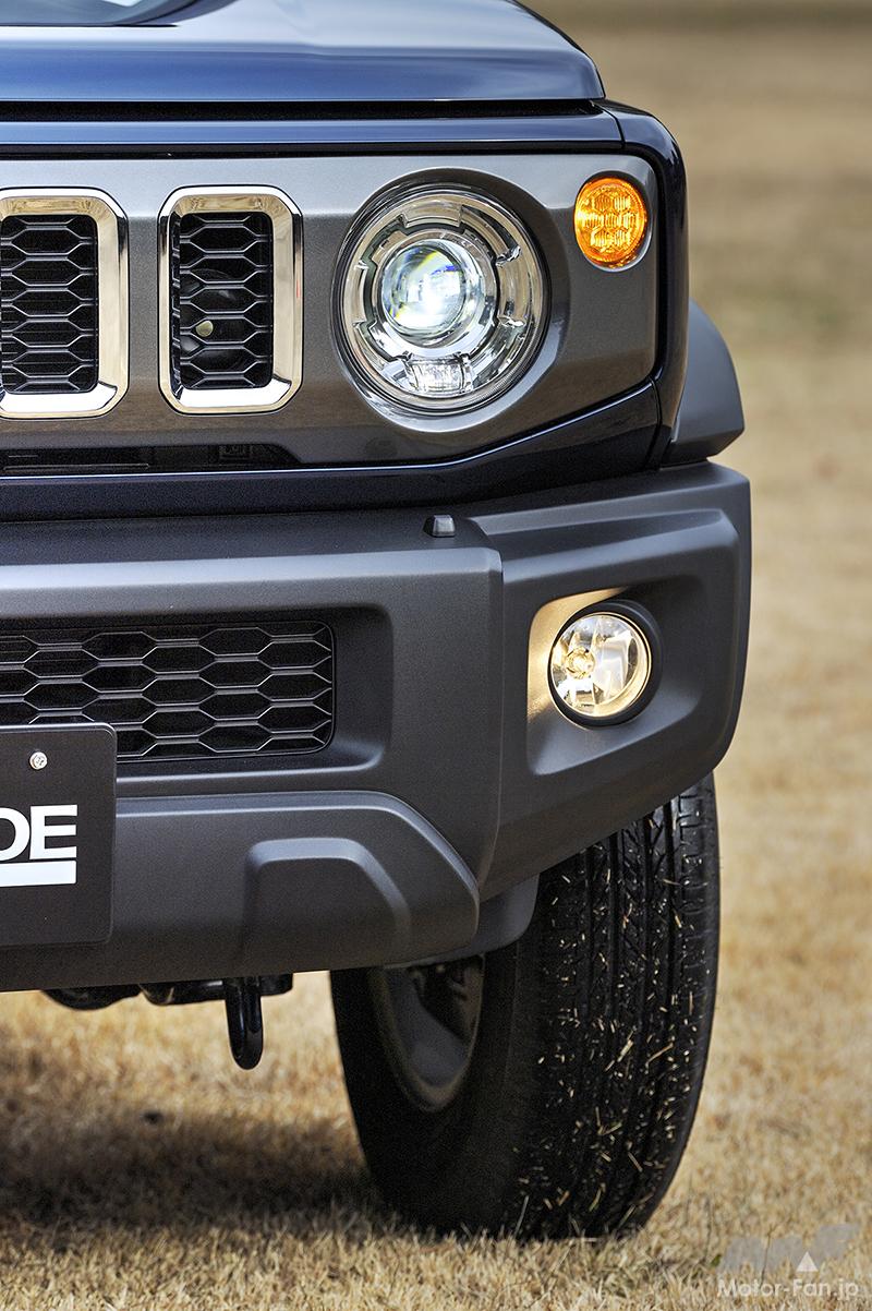 新車レビュー 出荷停止!? 『スズキ・ジムニーノマド』はなぜ注目されるのか? その魅力と全貌を再チェック/前編【写真・9枚目】 JIMNY NOMADE グレード:FC 4速AT フロントマスクの基本的な形状はジムニーシエラと同様だが、ノマドのグリルは、ガンメタリックで仕上げられてメッキの装飾も加えられている。野性的な雰囲気と上質感を両立させた。 ジムニーノマドのボディは、ジムニーシエラをベースに、全長とホイールベースをそれぞれ340mm拡大して開発されている。外観には適度に伸びやかな印象があり、ルーフとボンネットの長さもバランスが良い。この外観も高人気の理由だ。 ジムニーとジムニーシエラのフロントディスクブレーキはソリッドディスクだが、ジムニーノマドは放熱効果の高いベンチレーテッドタイプを採用。車両重量の増加に対応している。 LEDヘッドランプが標準装着され、夜間ドライブの安心感も高めている。フロントマルチリフレクターハロゲンフォグランプも標準装着され、オプションで加える必要はない。 ジムニーノマドには、ジムニーやジムニーシエラが備えていないリヤフォグランプが標準装着されている。濃霧の時に点灯すると、後続車両が走りやすく、追突の防止にもなる。ただし晴天の日に点灯すると、後続車を眩惑させるから点灯してはならない。 リヤゲートの右下には、ジムニーノマドのエンブレムが装着されている。ノマドの雰囲気に合わせた落ち着いたデザインで、後ろ姿を引き締めている。ノマドは遊牧民の意味で、自由にどこにでも出かけられる車両のコンセプトを表現している。 この画像の記事を読む