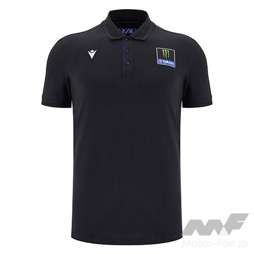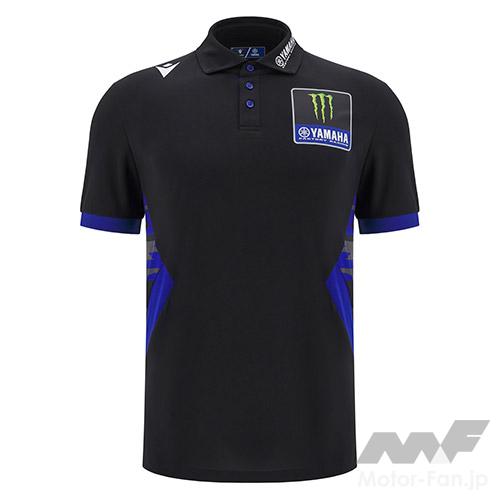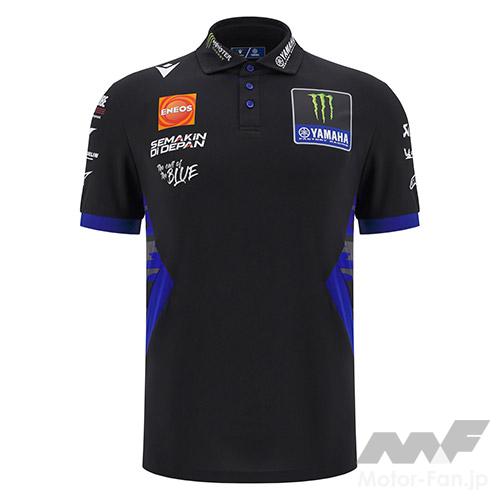 「MotoGP2025 Teamポロシャツ」は、背面にマイクロメッシュを採用することで通気性を確保した機能的な一枚。ライダーが実際に着用するユニフォームのレプリカで、胸元と背中にはMonster Energy Yamaha MotoGPのロゴとオフィシャルスポンサーの意匠が並ぶ。Tシャツモデルも同様の素材構成で、夏場の観戦に適した爽快な着心地を追求している。