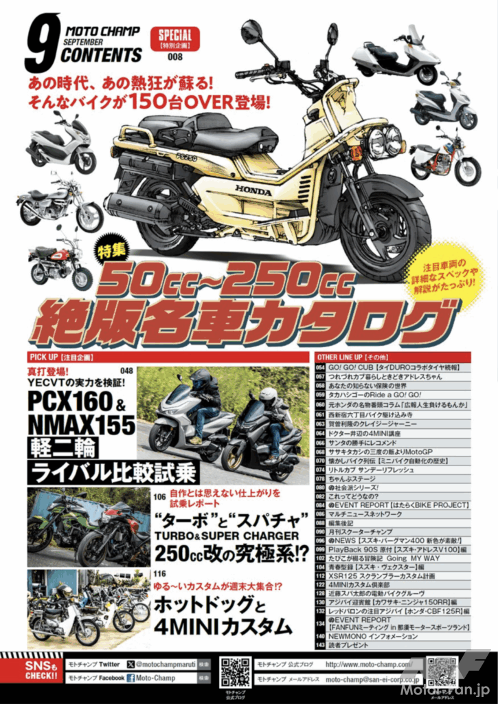 月刊モトチャンプ9月号:絶版50~250cc名車を一挙掲載
