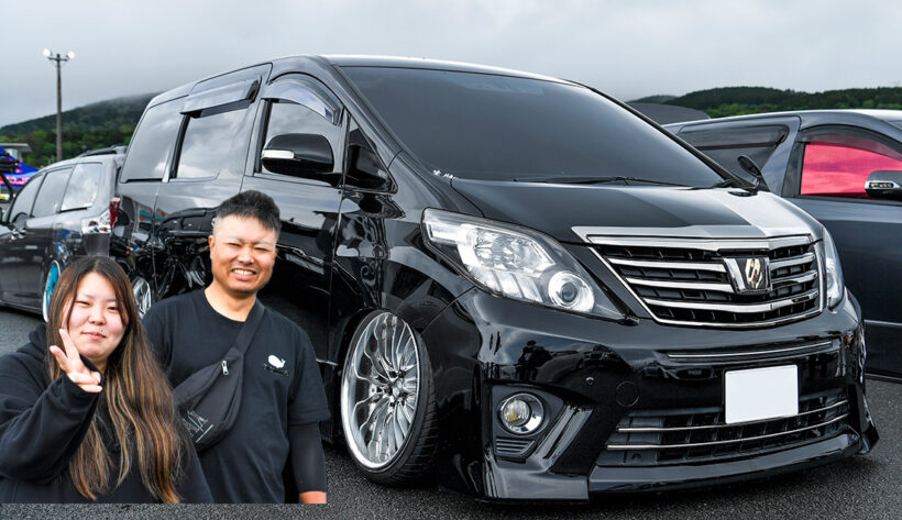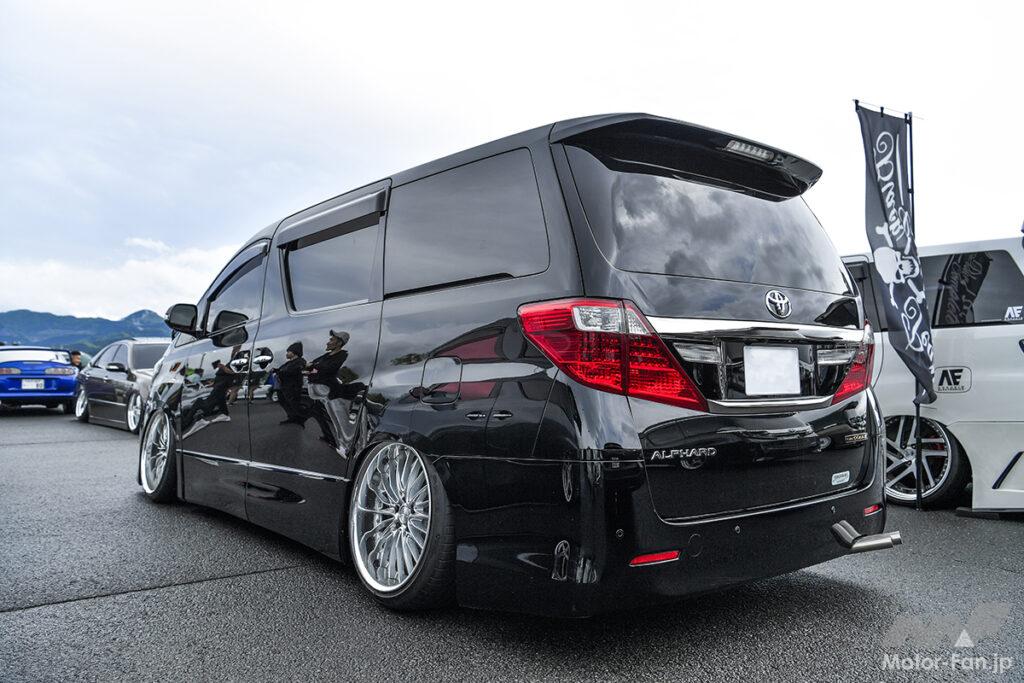 ミニバンカスタムシーンではエアサスを選ぶユーザーが増えている中、車高調で低いまま20アルファードをかっ飛ばす、あちゃんさん。「走る姿は車高調の方がドッシリしていてカッコいいと思います」。エクステリアは、よけいな社外パーツを付けたりせず、純正の良さを生かしたスタイル。それゆえ魅惑的なローダウンスタイルと、重厚感あふれる足元がさらに際立っている。