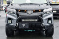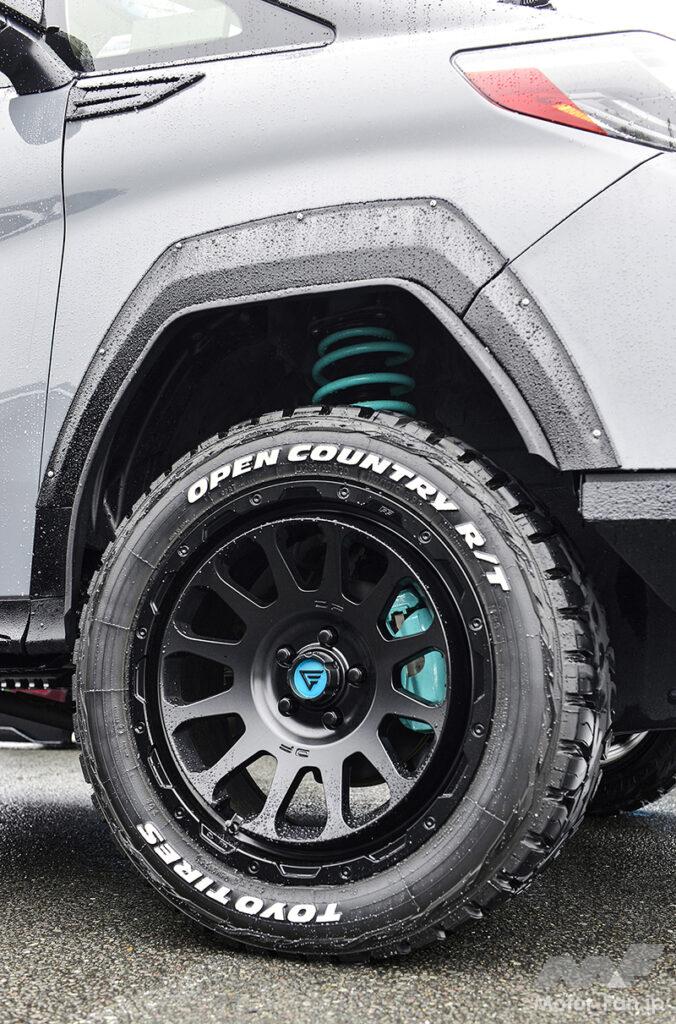 WHEEL●デルタフォース・オーバル(20×9.0J+35) TIRE●トーヨー・オープンカントリーR/T(265/50) EXTERIOR●フロント=クール、サイド=サンライズ製ハイラックス用加工、リア=純正加工、グリル=バンパー一体式、フェンダー=エセックス製ハイエース用加工、ヘッドライト=後期用、ヒッチメンバー=グローバルオート、タイヤキャリア=ネクサスジャパン INTERIOR●シートカバー=デルタフォース TUNING●リフトアップ=ハートランド、スプリング=エスペリア 他