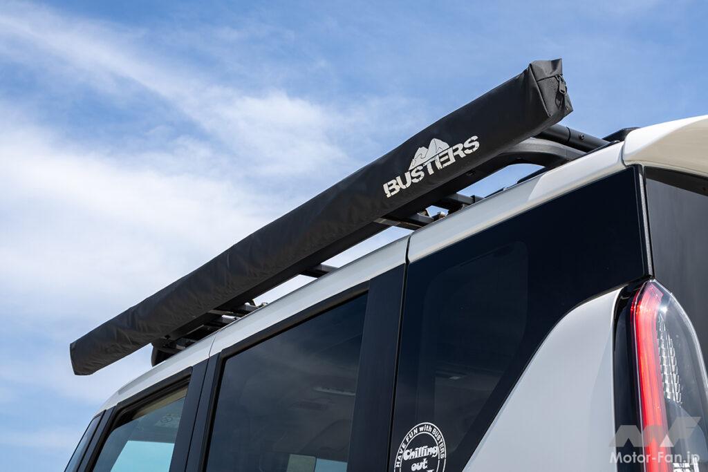 そのスタイルはフラッグスD:5の、まさにミニバージョン。アイデンティティでもあるメタルパーツを筆頭に、今旬4×4を軸とした最新のデリカミニが構築できる。 まず、フロントガードのダンシャクは、D:5の人気モデルであるゴクブト同様にボルトオン装着可能。クルマ側の加工は不要かつ、粉体塗装仕立てでワイルドなルックスが演出可能だ。また、4駆感を一気に高めると同時に、キャンプなどのアウトドアアクティビティでも重宝するバスターズーミニは、スタイリッシュな見た目と積載性を両立できるルーフラックだ。さらに、ミニ専用設計となるリアラダーは、Ver.2へと進化。高剛性かつ軽量化を達成し、ラダー昇降時に気になる、テールゲートパネルへの衝撃を和らげるトゥキックプロテクションを用意。そして、減衰力とガス圧を最適化させ、リアラダー装着時の開閉をスムーズに行える強化ダンパーを新たにラインアップした。