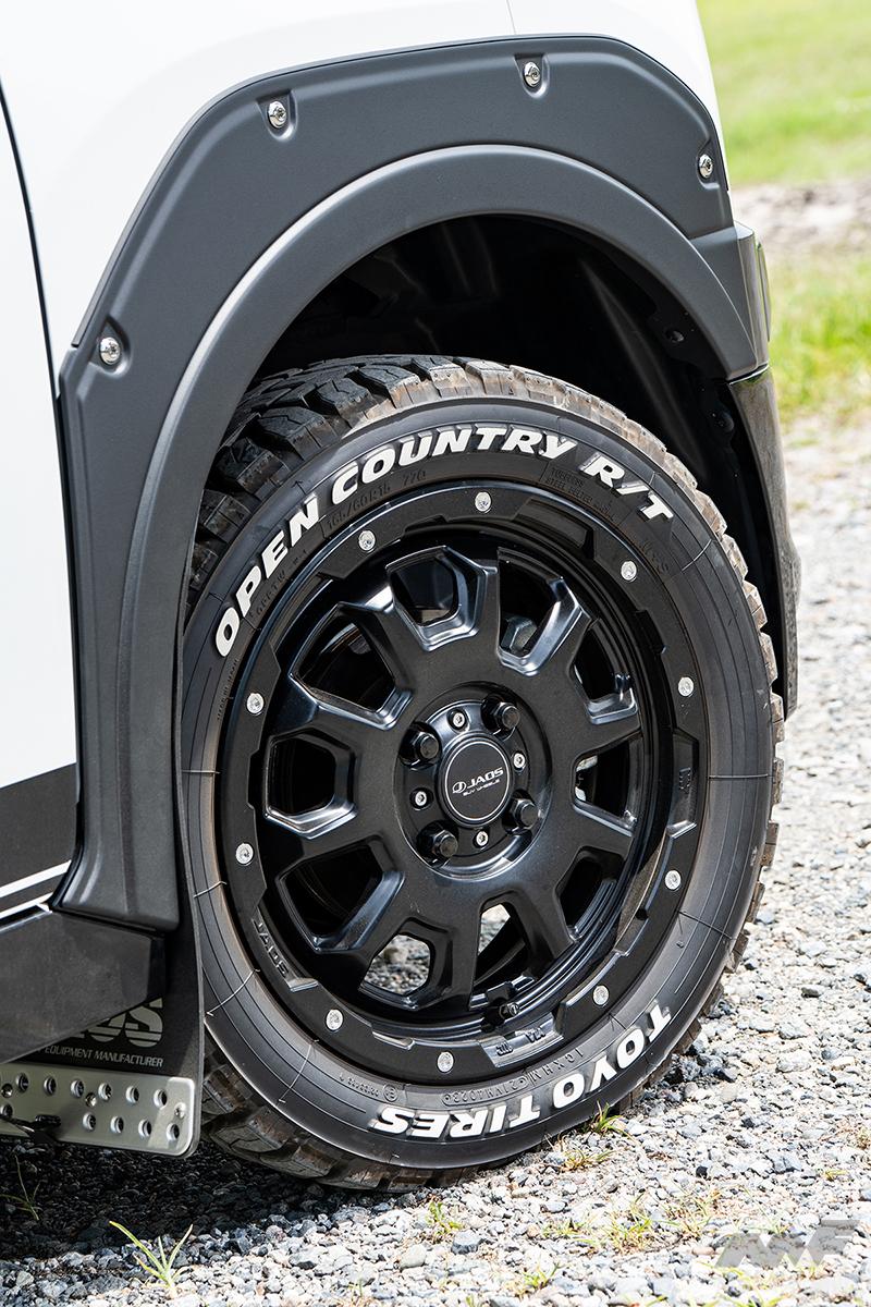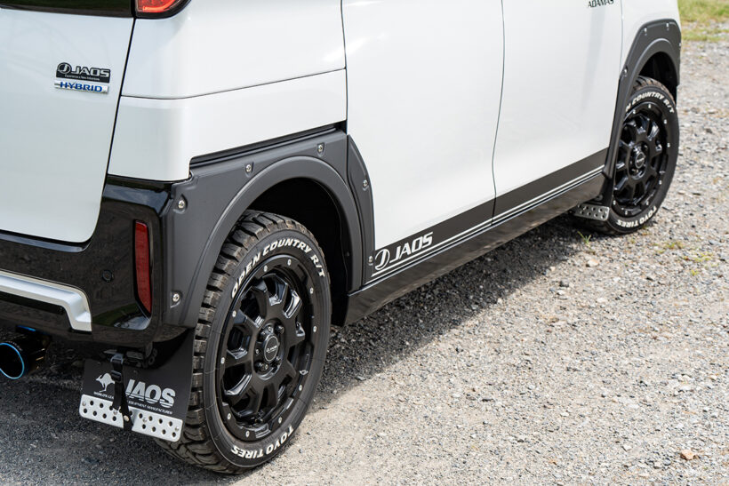 外装 老舗四駆メーカーが提案する「ジャオススタイル」 ワイルド&アグレッシブな新『デリカミニ』が誕生!?【写真・5枚目】 JAOS デリカミニ JAOS デリカミニ●フロントグリル 6万6000円 ●フロントスキッドバー(ブラック/ブラスト) 5万8300円 ●ボンネットプロテクター 1万9800円 ●フェンダーガーニッシュ type-X(マットブラック) 7万9200円 ●マッドガードIII 専用セット 各1万5400円(フロント・リア) ●フューエルリッドプロテクター 5500円 ●ドアハンドルプロテクター カーボン調type-B 5500円 ●フラットラック 1150×1400 10万3400円 ●BATTLEZ マフラーカッターTi チタンテール 2万6400円 足回り/BATTLEZ リフトアップスプリング Ti-W 4万9500円 ホイール/ジャオス・アダマス BL5(15×5.0+46) 3万800円 タイヤ/トーヨータイヤ・オープンカントリーR/T(165/60R15) サテン調ブラックのバーにステンレスのロゴ入りプレートを追加。4WD用だが、別売のブラケットを追加すれば2WD車にも装着可能。 アンバーのLEDランプを4個内蔵したフロントグリルは、流行のUS風カスタムに最適。未塗装品とマットブラック塗装済みを設定。 ダミーボルトをあしらったフェンダーガーニッシュタイプX。出幅は片側10㎜以内に抑えているが、数値以上のワイド感が得られる。 貼るだけでボディにメリハリを付けられるボンネットプロテクター。シボ風の質感を持つ素材にフッ素加工を施して耐久性を向上。 ドアハンドルプロテクターは貼るだけで爪などによる引っかき傷を防ぐアイテム。カーボン調のデザインを採用して、スポーティな雰囲気を醸し出す。 ドアハンドルプロテクターと同素材のフューエルリッドプロテクターもラインアップ。純正フューエルリッドに合わせてカット済み。 ジャオスおなじみのアイテム、マッドガードⅢはブラックとレッドの2色から選べる。フロント用とリア用を設定し、セットで付ければ統一感アップ。 高品質のチタンテールを採用したマフラーカッターは、本物素材ならではと言える美しい焼き色に注目。専用の固定バンドで誰でも簡単に取り付けできる。 ビードロックリング風リムと5スプリットディッシュスポークで魅せるアダマスBL5。デリカミニにジャストフィットな15インチを用意している。 「柔らかいけどコシがある」、上質な乗り心地がウリのリフトアップスプリングTiーW。アップ量は20~25㎜、4WD車用。 この画像の記事を読む
