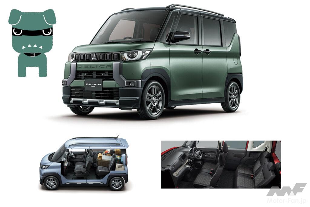 フロントは3分割組み立て式のハーフ形状で、スキッドプレート風の意匠も備わるなどデリカミニらしさも踏襲。グリルは横長のスポーティ仕様で、デリカロゴを隠すガーニッシュも設定されている。