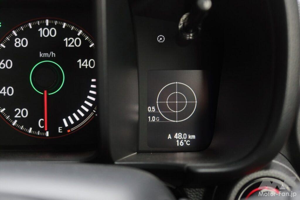 シフトノブはフロアではなくインパネにある。MT車の開発に際してはコンベンショナルなフロアシフトも検討したが、フロアにシフト操作部を設けると、操作の際に助手席乗員の膝と干渉することがわかった。それが、インパネシフトを採用した理由のひとつ。もうひとつは操作性だ。N-ONEのようにアップライトな運転姿勢となる場合はフロアシフトよりもインパネシフトのほうが操作性に優れることが確認できたという。ステアリングとシフトノブの距離が近いのも、操作性の点で有利に働く。