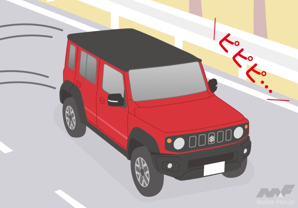 走行中に車線などを検知して、左右にふらつきながら走ると、ブザーやメーター内部の表示によって警報を発する。高速での車線逸脱も検知し、警報してくれる。