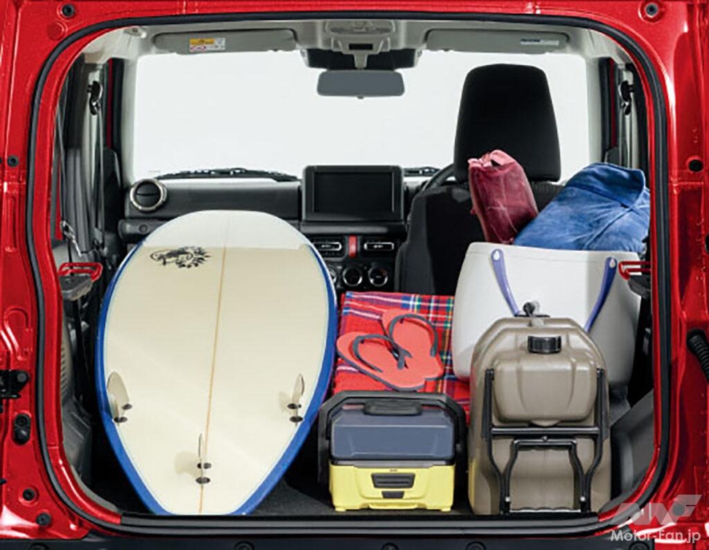 内装色は、軽自動車のジムニーや小型車のジムニーシエラも含めて、ブラックで統一されている。内装は装飾類の使用を抑えることで、アウトドアにおけるプロユースに適した仕上がりになる。汚れが目立たず、ファブリックのシート生地には、撥水加工も施した。