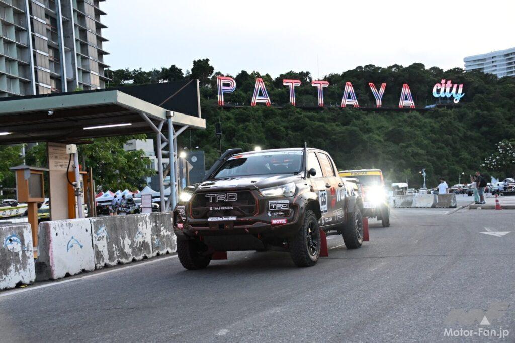 スタート地のベースとなるパタヤのアジアパタヤホテルの敷地内に設けられた車検場では、朝7時前から車検が行なわれ、各車が車検の列に並び続々と装備品チェックや車両各所の確認を行なっていく。それらの車検も昼過ぎには終了し、夕方から全体のブリーフィングがあり、その後セレモニアルスタートに向けて全ラリー車がホテルを離れ、ダウンタウンにあるウォーキングストリートへ向かい、セレモニアルスタートが実施された。