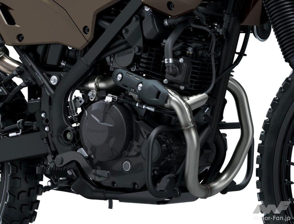 搭載される空冷232cc単気筒エンジンは、最高出力18PS/8000rpm、最大トルク19Nm/6400rpmを発揮。バランサー内蔵の4ストロークSOHC2バルブエンジンは、低中回転域でのトルクを重視した特性を持つ。