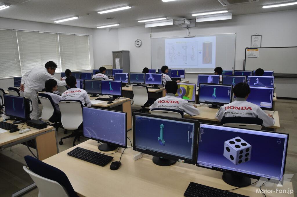 今回取材したホンダ学園・ホンダテクニカルカレッジ関東校では、大まかに研究系と整備系に分かれている。研究系では、最先端の機材やソフトウェアを使用して部品の設計や試作・製造などを実践。学生は、企業に就職して即戦力として活躍できる技術を身につけることができるという。