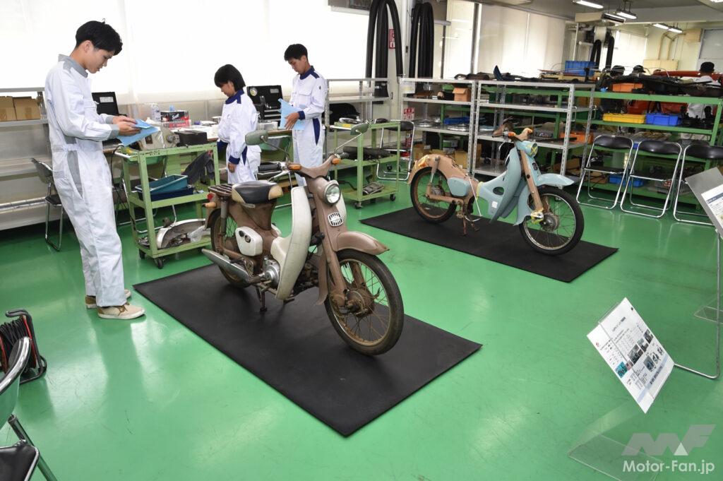 スーパーカブはそのタフさが広く認めら、世界中で愛されているものの、使い潰される実用バイクである一面も否定できない。そんなスーパーカブの、60年以上前の初代モデルが手に入り、レストア可能なのもホンダ学園ならではだろう。