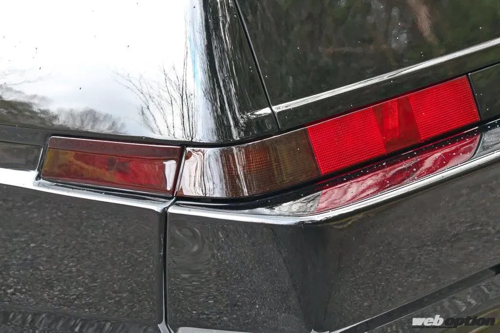 例えば、助手席側ドアやトランクリッドのキーシリンダーをスムージングしたり、テールランプ表面の小さな刻印を削り取ってフラットにしたりなど。実はこういう作業の積み重ねによってクルマ全体を眺めた時の印象が大きく変わる。アルシオーネオーナーでもない限り、言われなければまず気が付かないし、あるいは同じVXを隣に並べて見比べなければ、どこがどう変わっているのか見抜くことは難しい。