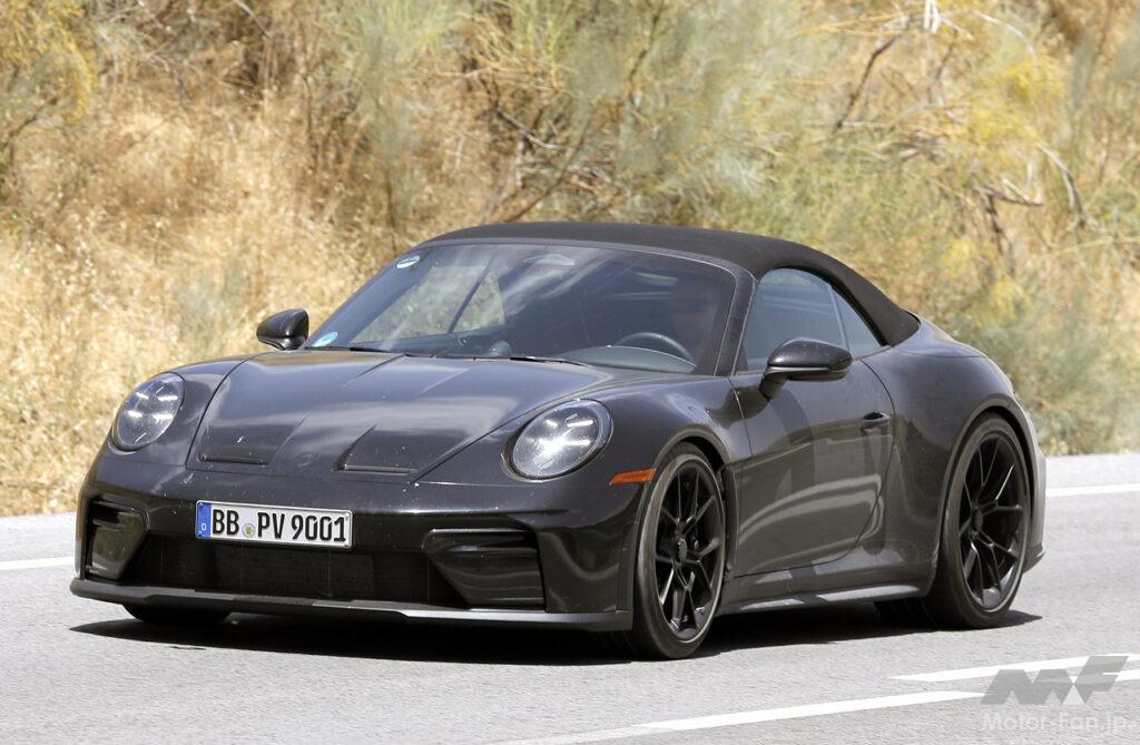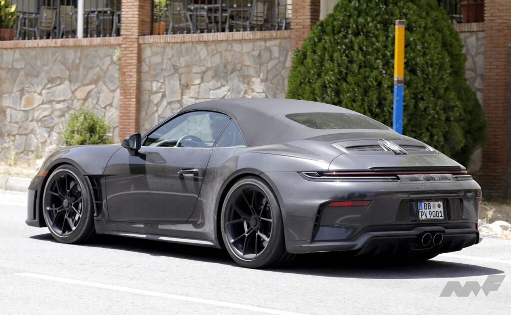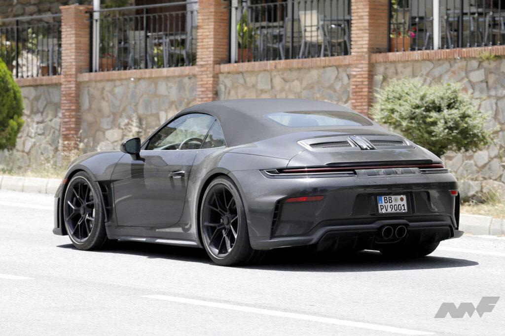 そしてついに、スペインのスクープ班は、GT3ボディをベースにしながらもクラシックなコンバーチブルレイアウトを採用した、次世代911スピードスターの姿を捉えることに成功した。