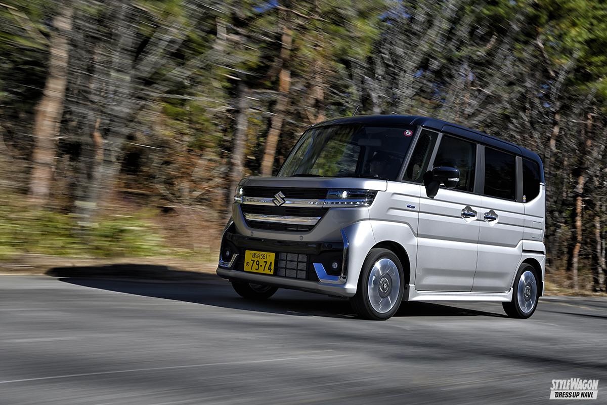 静粛性の高さも新型の美点。アンダーボディの接合面に減衰接着剤が、後席まわりの計4カ所に遮音バッフルをスズキとして初採用した恩恵で、ロードノイズが低減。さらに、40〜50km/hという速度域での嫌なこもり音などもあまり感じさせず、街中での静粛性は高い。高速域では、新型N-BOXよりもロードノイズはやや高め。