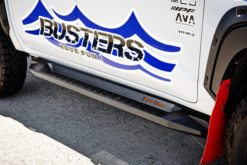 外装 マリンレジャーが最高に似合う!『トライトン カスタムコンテスト』のアワード授賞車を全方位チェック!!【写真・14枚目】 auto flags TRITON auto flags TRITON デリカD:5用でもロングセラーを続けるバンパーガード、GOQBUTOのトライトン専用モデル。3インチ径のパイプを採用し、フェイスの力強さを大幅に向上。 安全性の向上に役立つGOQBUTO用デイライトが発売予定! LEDライトのカラーはホワイト/アンバーで、専用のステーも付属。 エンジン下部からミッション部分まで広範囲でカバーするエンジンアンダーガード。写真のフレイムレッドの他、ガンメタも設定。 純正交換タイプのスチール製サイドステップ。地上高や走破性に影響を与えないスリムな設計で、ボディサイドを引き締める。 ヒッチメンバーや牽引フックの他、ベッド内にアクセスする際に便利な昇降用ステップも備えた多機能バンパー、バックアーマー。 リザーバータンクの他、2ウエイの減衰力調整機能も備えたFLEGS車高調。製品化に向けた実走テストが繰り返し行われている。 この画像の記事を読む