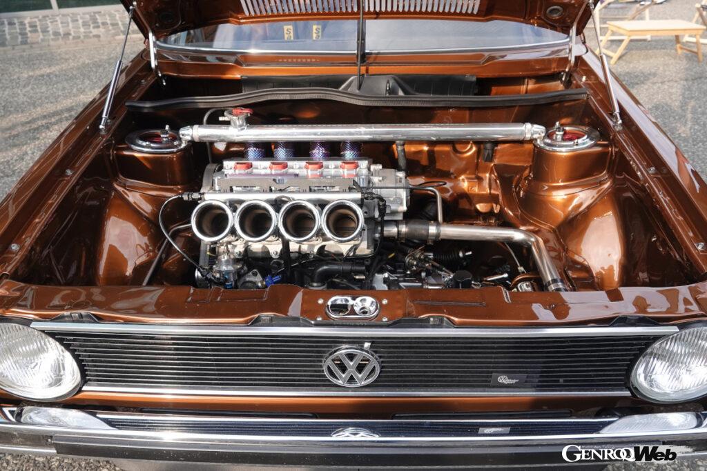 さらにいえば、ボンネットを開いてエンジンルーム内を披露する車両も少なからず参加していた。それらはエンジンルーム内も光沢のあるカラーでペイントするとともに、各種配管やストラットタワーバー、エアファンネル(!)などを目映いばかりにメッキし、メカニカルな美しさを強調していた。この辺もドイツ人愛好家の傾向を示すものといえるだろう。さらには、ゴルフⅡをミッドシップ化したり、片側3ドアのストレッチリムジン(?)に改造したゴルフなどが参加。ファンの注目を集めていた。