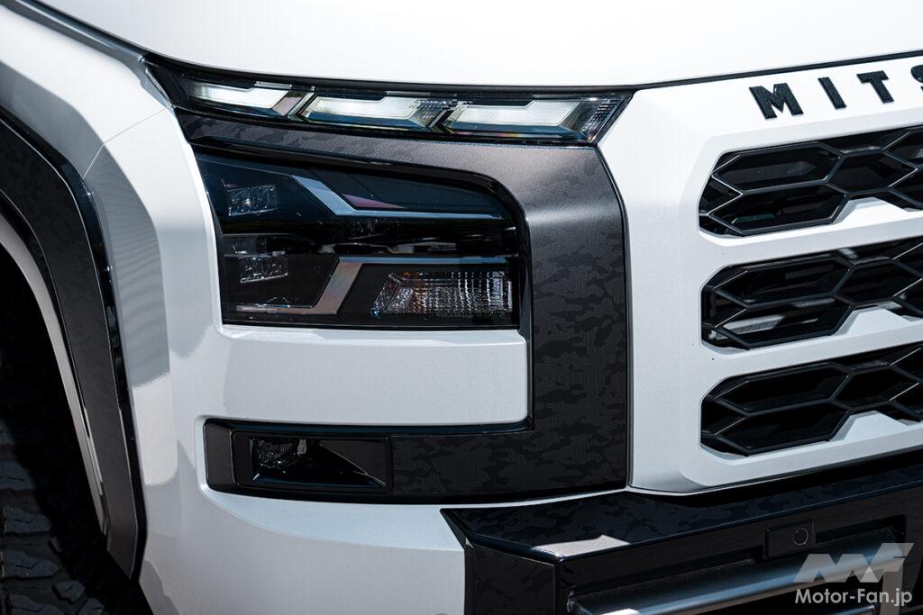 ハイラックスでは、特徴的な大型グリルの枠をメインとした純正メッキ部を設定していたが、トライトンは、ヘッドライトを囲うコの字型パネル部分、フロントバンパーのアンダー部をアレンジ。さらに純正オーバーフェンダー、そしてリアカーゴ上部のパネル部分を設定し、スポット的な施工ながらも変わった感を大きく味わえるプログラムを提案している。もちろんドアノブやリアゲートノブ、ピラーなどの定番部分のアイテムもしっかりと網羅している。