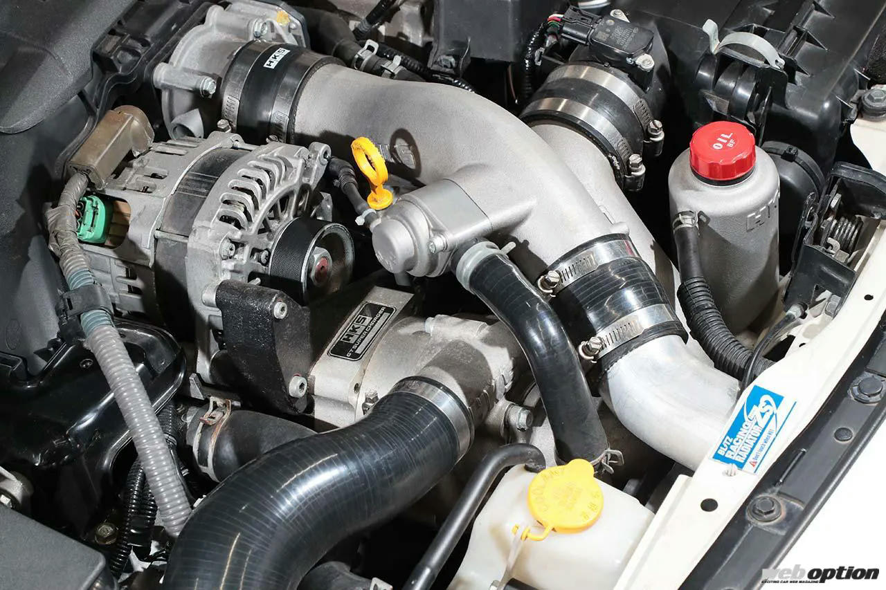 GTスーパーチャージャー仕様のエンジンは、年齢の近いサーキット仲間で速かった86がスーパーチャージャー仕様だったことからフェニックスパワーにリクエストしたもの。弱点となるコンロッドを強化したローコンプ仕様という耐久性重視で、機関系は300ps仕様でもノントラブル。「鈴鹿の長いストレートが楽しく走れるようになっただけじゃなく、ストリートでも楽に走れる」とのこと。