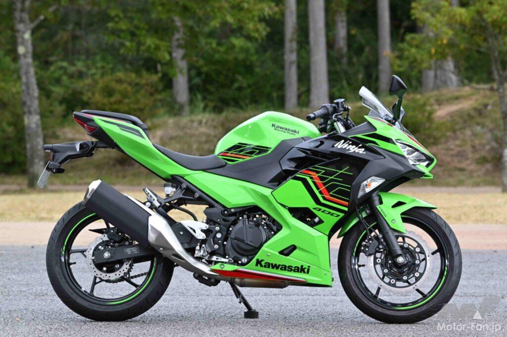もっとも現代の400ccクラスには、ニンジャ400以外にもサーキットが楽しめるフルカウルスポーツが存在する。以下に記す最高出力・装備重量・軸間距離・キャスター角・トレールを見れば、各車の素性が理解できるだろう(最高出力を除く数値は、大雑把に表現するなら、小さければスポーツ指向で、大きければツアラー指向)。