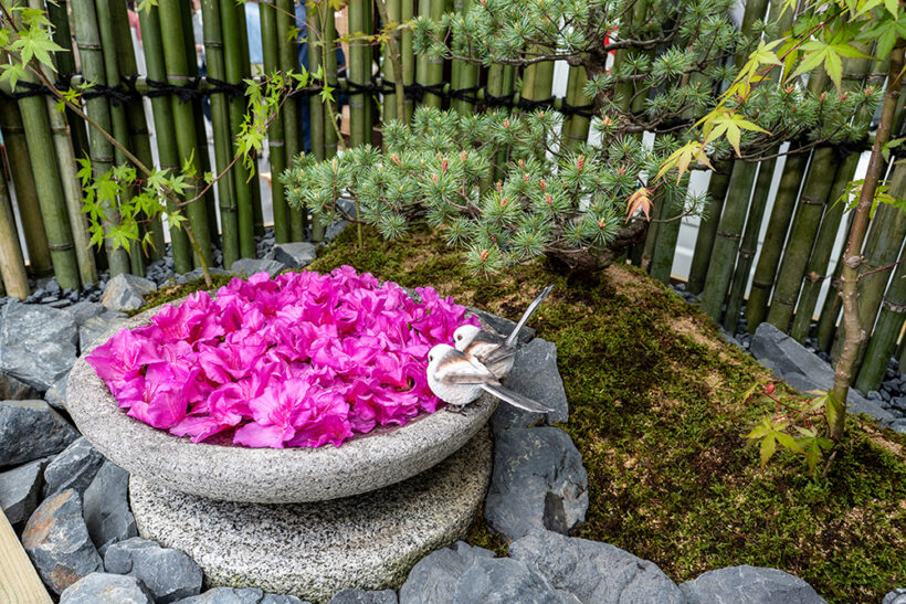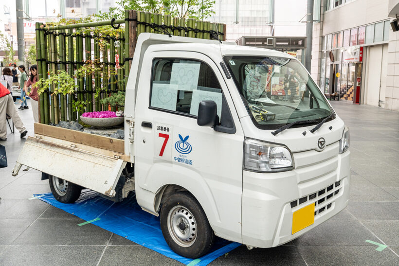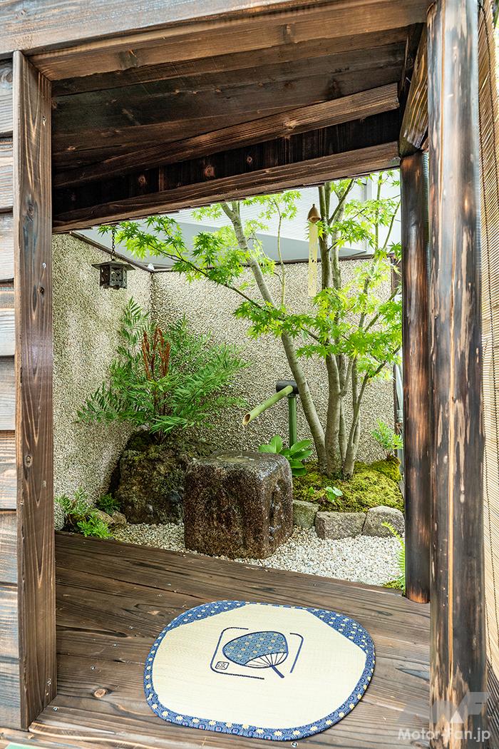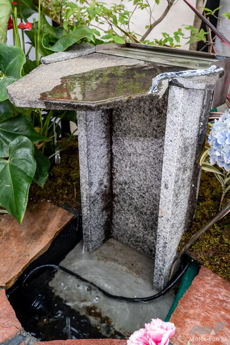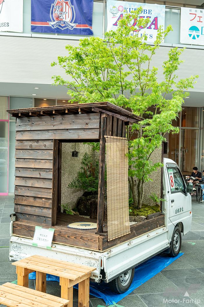 オフ会 【軽トラ庭園】美しすぎる和洋一体!? えっ軽トラックの荷台が植木鉢ってどういうこと?〘前編〙【写真・2枚目】 アンスリウムにカーネーション、アジサイにカスミソウ。コンセプトを理解したうえで庭園を眺めると和洋の一体化がよく分かる。 庭園の中央には水を循環させて水滴を滴らせ、ゆっくりと時の流れを刻むオブジェを設置。眺めているだけで心の平穏が得られそう。 DA16T CARRY西田幸寿園さん改めてハードに使い込まれた軽トラを見ていると日本の産業の裏側を陰ながら支えてくれているんだなぁと感慨もひとしお。 S500 HIJET中曽根造園さん運転席の窓ガラスには段階を追って構想を深めていった図面が掲載されており、実際の作品と見比べて感心するギャラリーさんもいらっしゃいました。 背後に建っている施設の建物が軽トラ庭園の壁および柵のデザインと似通っている辺り、なんか持ってるなーって感じですよね。 石垣とは異なる質感を持った船のような形状をした石は中央の凹みに水が張っていて、さり気なく花が浮いておりました。 DA16T CARRY光地園さん仕事柄、造園業のみなさんは軽トラの1台や2台は保有しているそうで、そこから軽トラ庭園の構想が生まれたらしいですよ。 四方を壁面で囲っているせいなのか、なぜか利休の茶室をイメージしてしまう。でも、部屋の中に木が生えてるんですよね。 S500 HIJET城造園さん庭園を構成している壁が見切れちゃってるじゃないですか。一応、車両が確認できるよう資料代わりに撮っておいたんですよー。 目に入るのはドス黒い玄武岩とカチ割られたベーコンのような樹木。見れば見るほど味わい深く感じてくるのは自分だけでしょうか!? 玄武岩以外にも岐阜の新白川砂利や香川の庵治石、能登の六方石などを敷き詰め、杉苔やヤブコウジで彩りを添えている。 DA16T CARRY 光地園さん仕事柄、造園業のみなさんは軽トラの1台や2台は保有しているそうで、そこから軽トラ庭園の構想が生まれたらしいですよ。 カッコーン…と日本庭園には欠かすことの出来ないシシオドシ(注:この竹筒は可動しません)なテイストも味わい深いコンテンツ。 TT2 SAMBAR/森新樹園さん この画像の記事を読む
